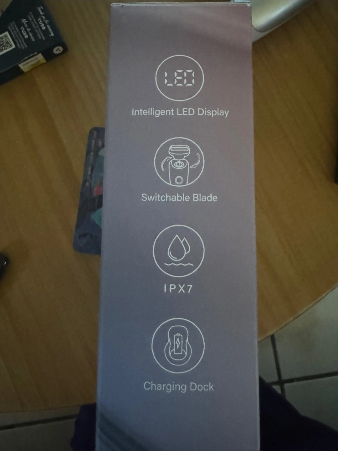 Electric body hair shaver for women - brand new, never used, in original box. LED display, two interchangeable blades, can be used wet or dry, waterproof & is rechargeable with a charging dock.