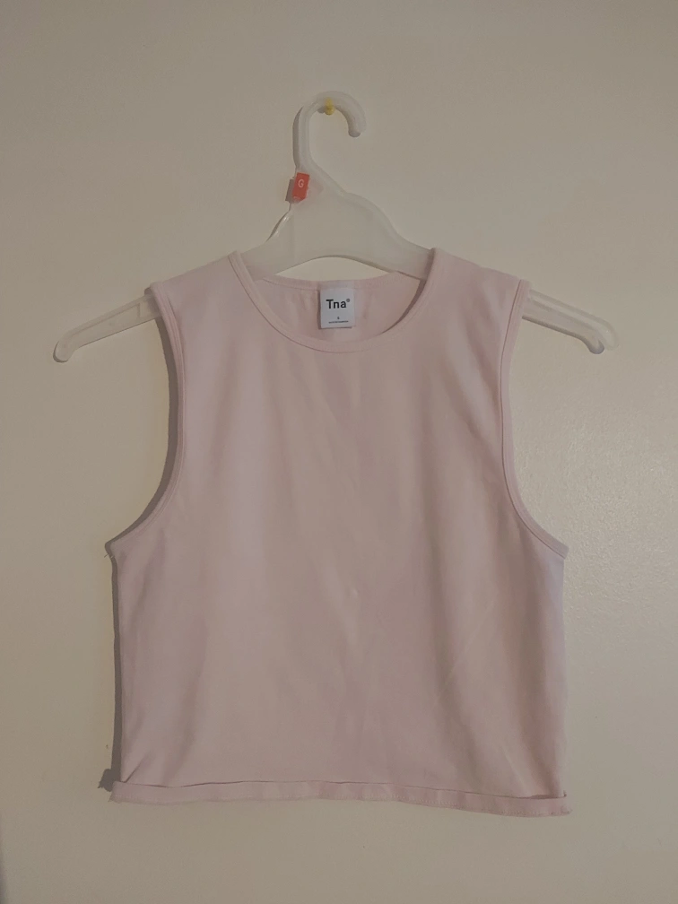 Selling a cute Tna cropped tank top in a lovely pink colour! It's in great condition and a size small. Perfect for summer!