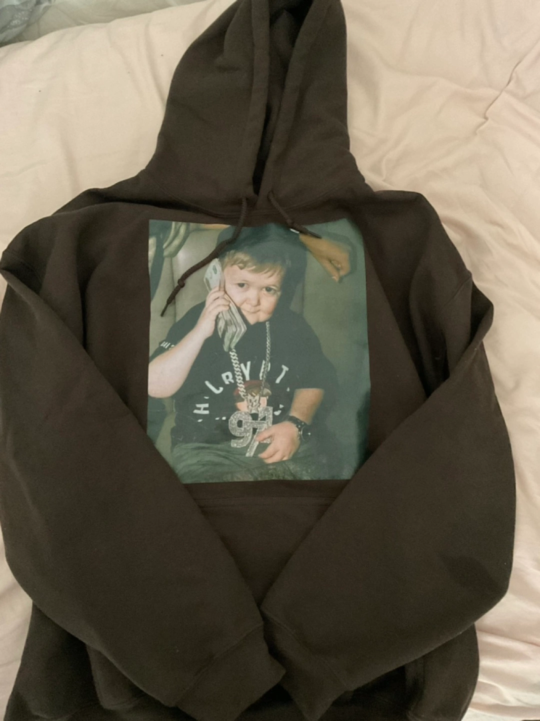 Custom made Hasbulla print hoodie. It’s super soft, cozy and looks really cool. Size is too big on me.