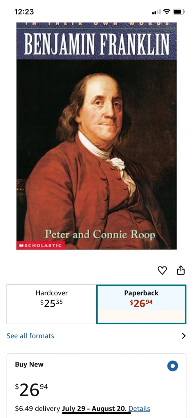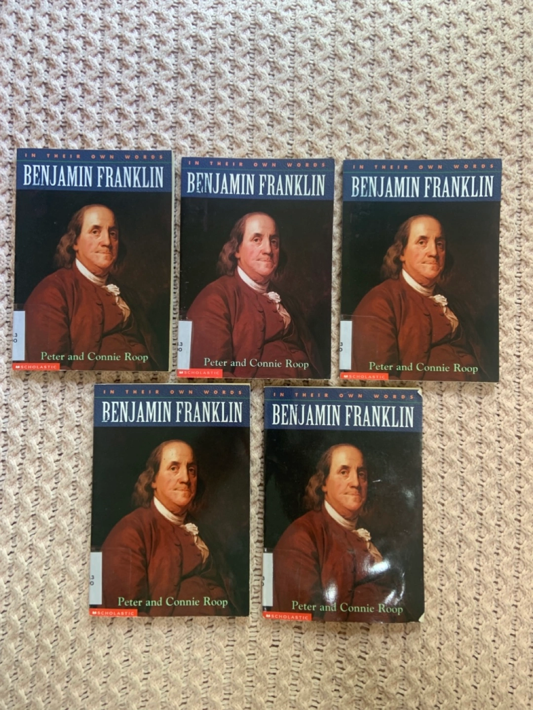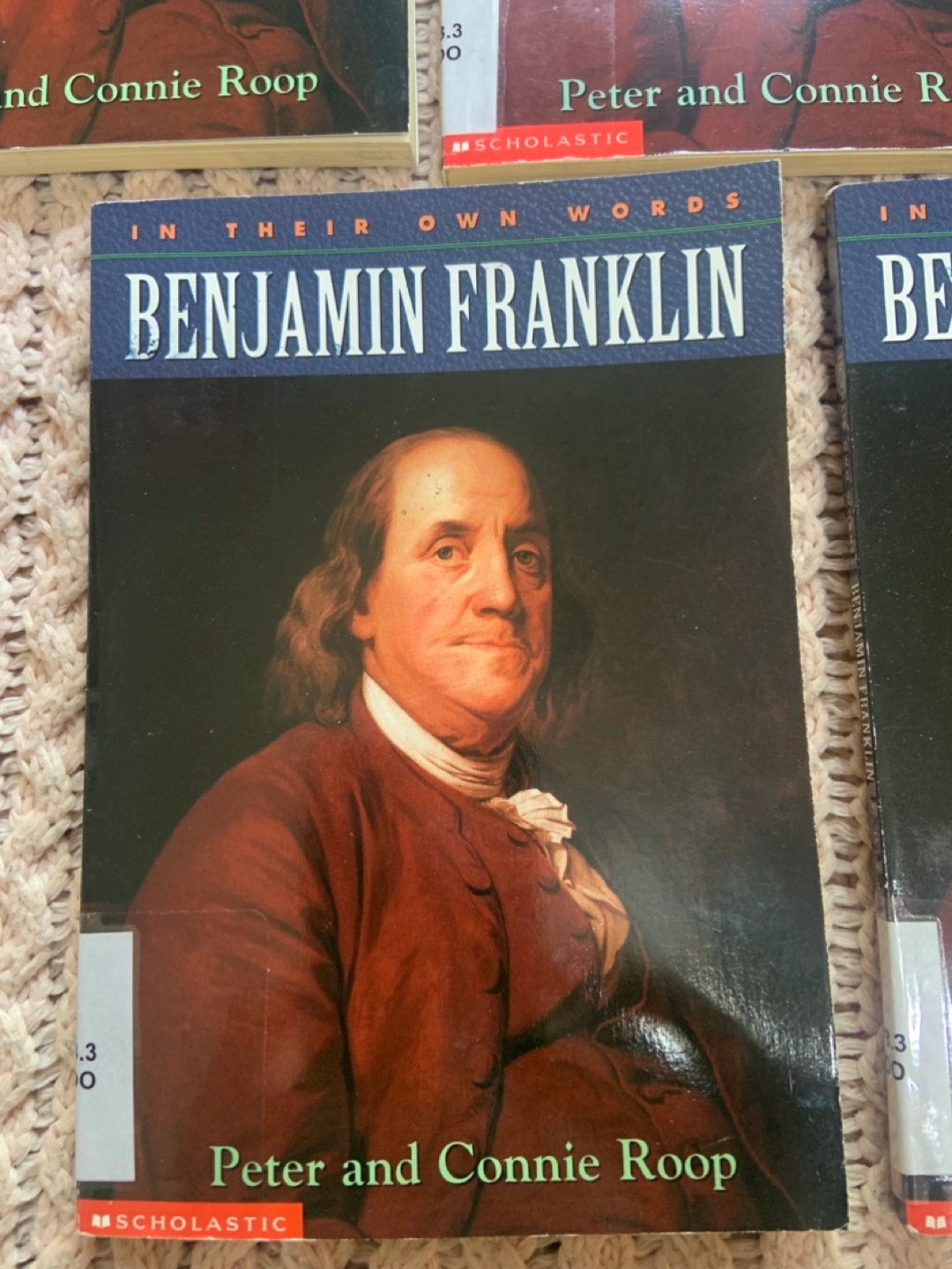 Selling a book titled "Benjamin Franklin" from the "In Their Own Words" series by Peter and Connie Roop Published by Scholastic $ 10 ALL