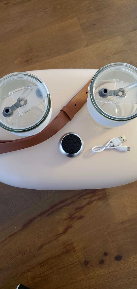 Selling a Cooler Bag with two matching cups and a small Bluetooth speaker. This stylish cooler is perfect for picnics, outings, or keeping your lunch fresh. It comes with a convenient shoulder strap for easy carrying. The set includes the cooler bag, two cups with silicone sleeves and straws, and a mini speaker for tunes on the go!