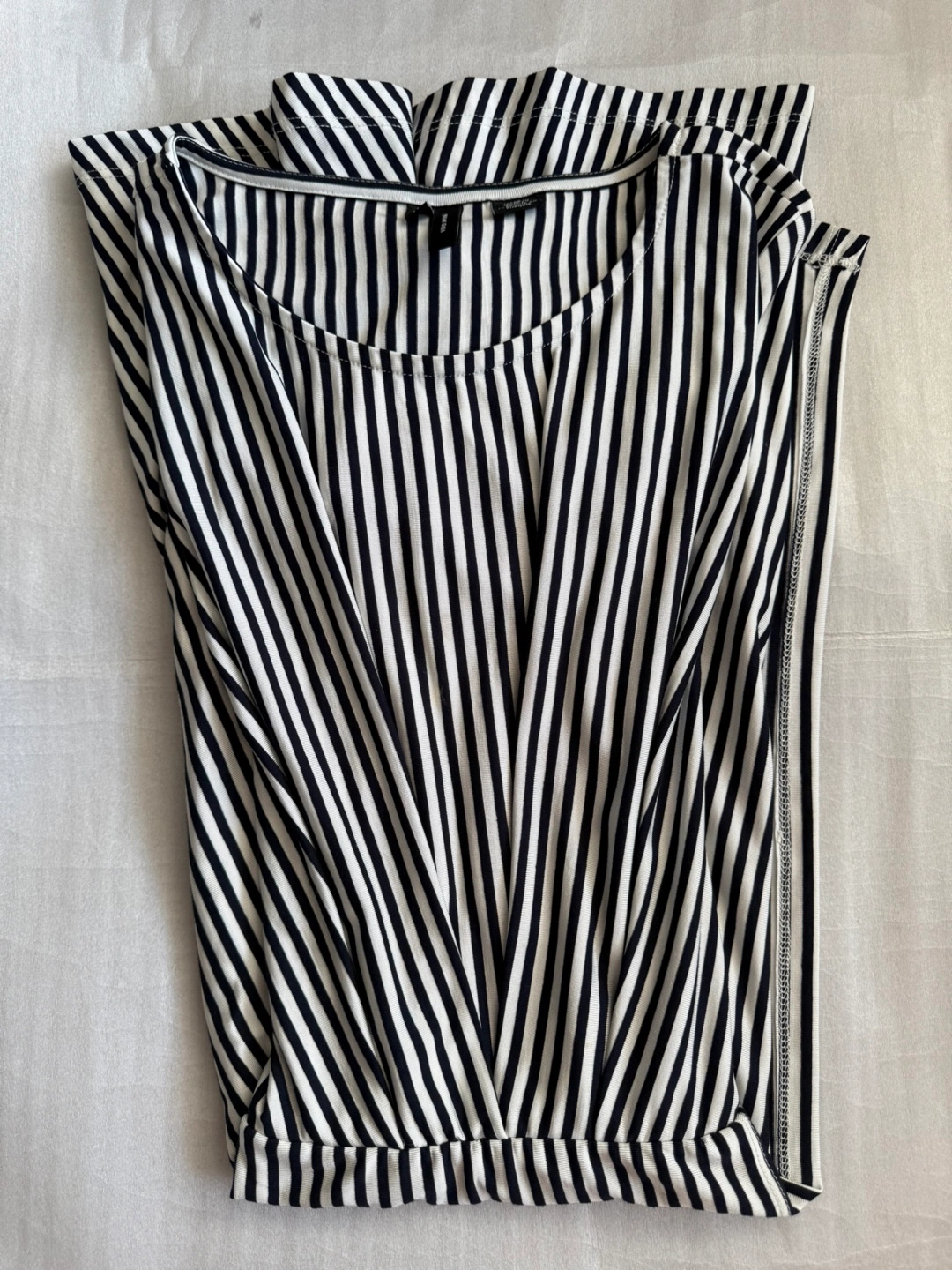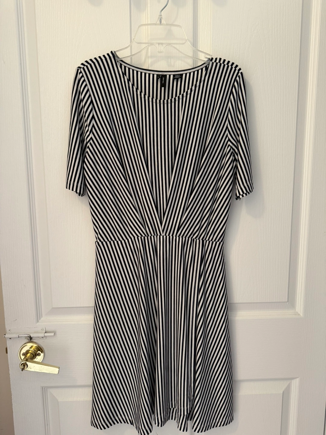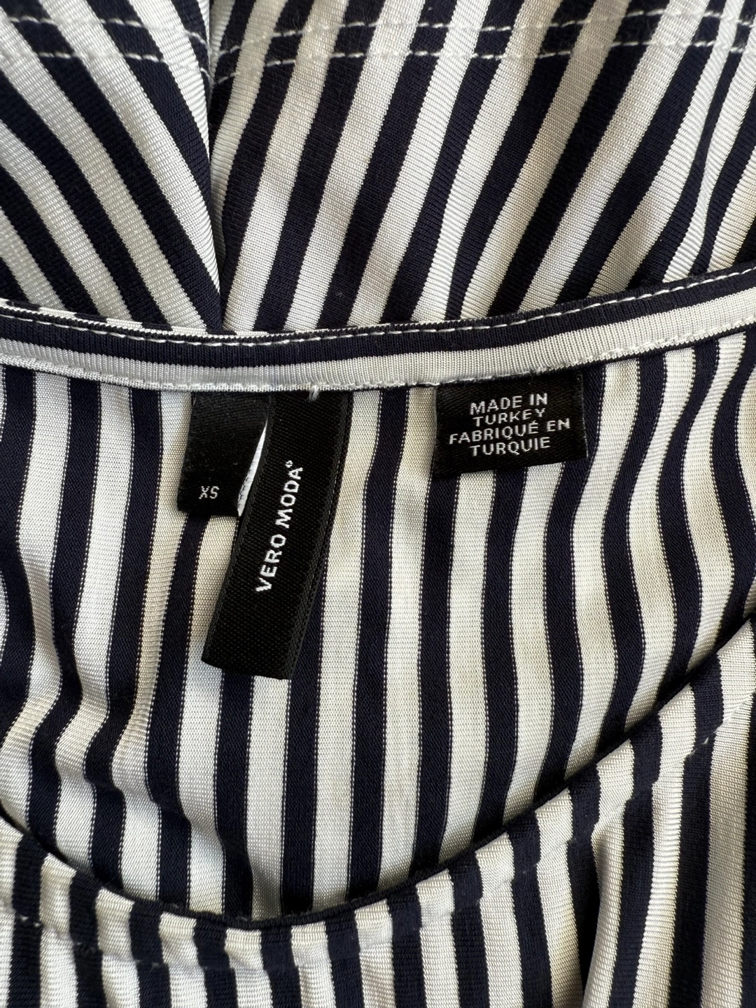 MEETING LOCATION: ✅ Scarborough Town Centre Mall 💰 Cash payment only ⭐️ Please check my listing for more great deals including a red summer dress for just $10.00 and Tna shorts (new) VERO MODA Striped Wrap Dress - Size: XS Description: • Vero Moda short-sleeve wrap-style dress ***Black & white vertical stripes ***Elastic waist - super comfortable! ***Fit & Flare style ***Soft/stretchy fabric: Viscose, Polyester & Elastane DIMENSIONS: (in inches approx.) 36" long (shoulder to hem) 12” (centre width) **Unstretched** Perfect for summer, casual wear, or even office looks. ✅ CONDITION: Excellent!! Absolutely no damage. No rips, stains or signs of wear. In store-bought condition since it’s been worn a few times only!