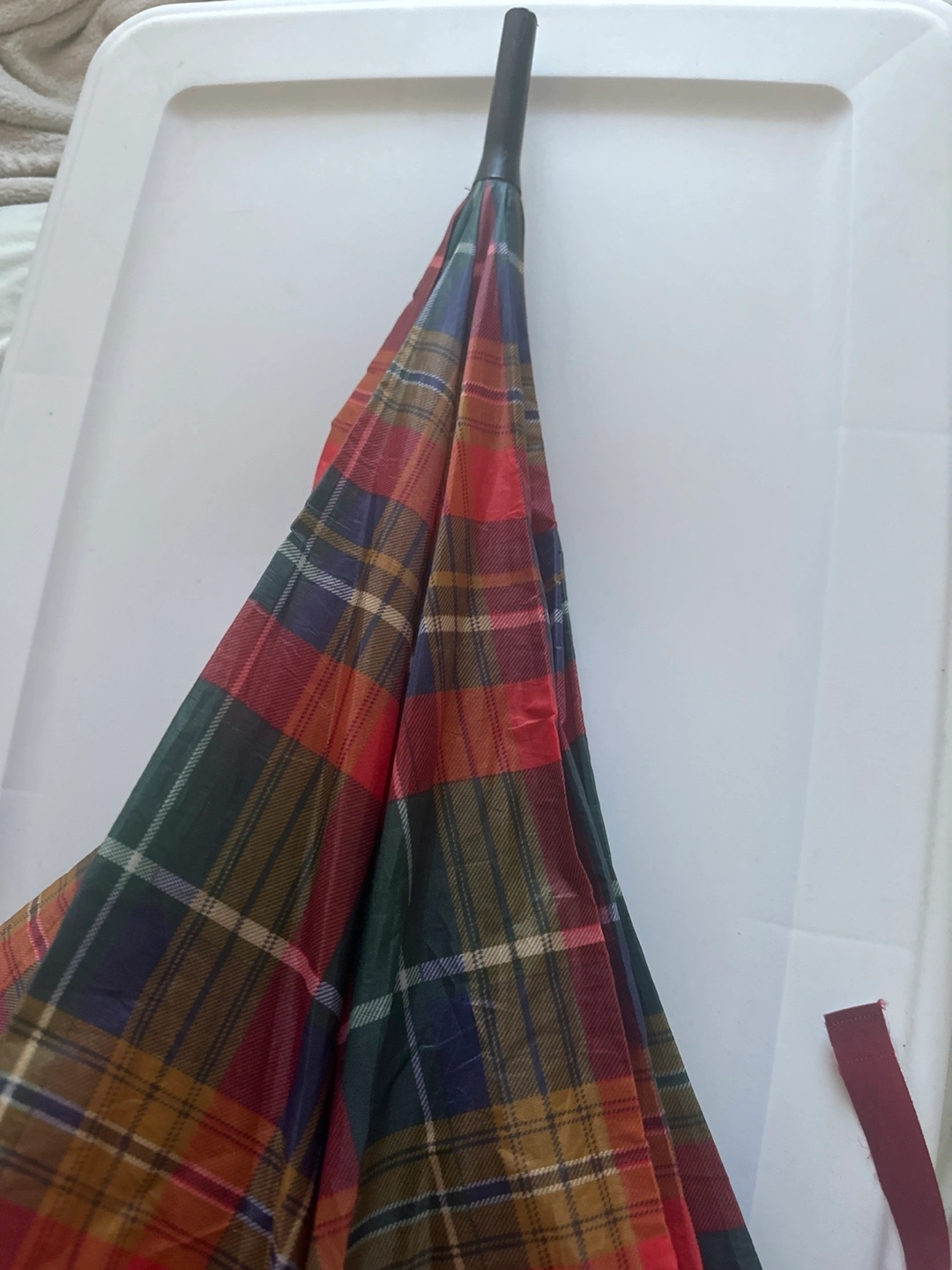 Here's a plaid umbrella! It's in great shape and ready to keep you dry on those rainy days