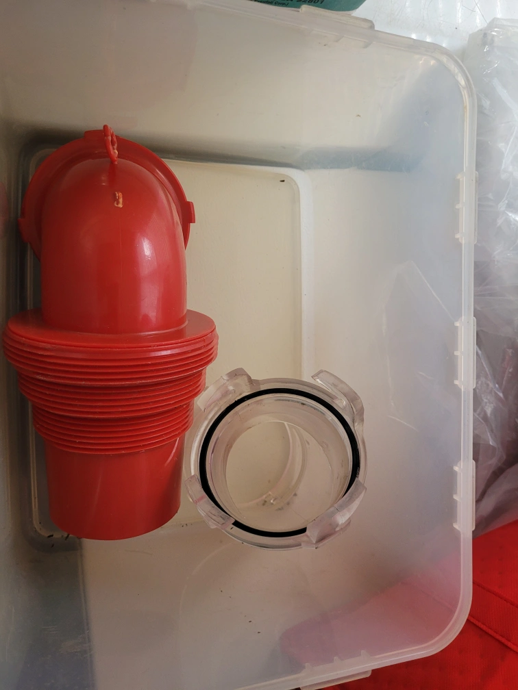 Selling some plumbing parts. They're red and clear, and look to be in good condition. Perfect for your next RV trip.
