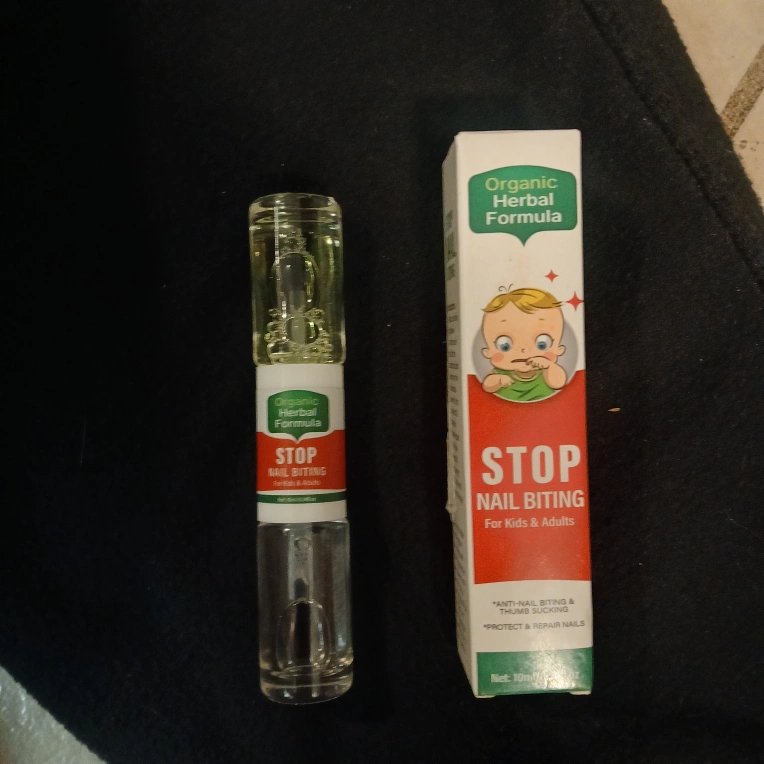 I'm selling a bottle of Stop Nail Biting polish, designed for both kids and adults. It's an organic herbal formula to discourage nail biting and thumb sucking, while also protecting and repairing nails. Net content: 10ml