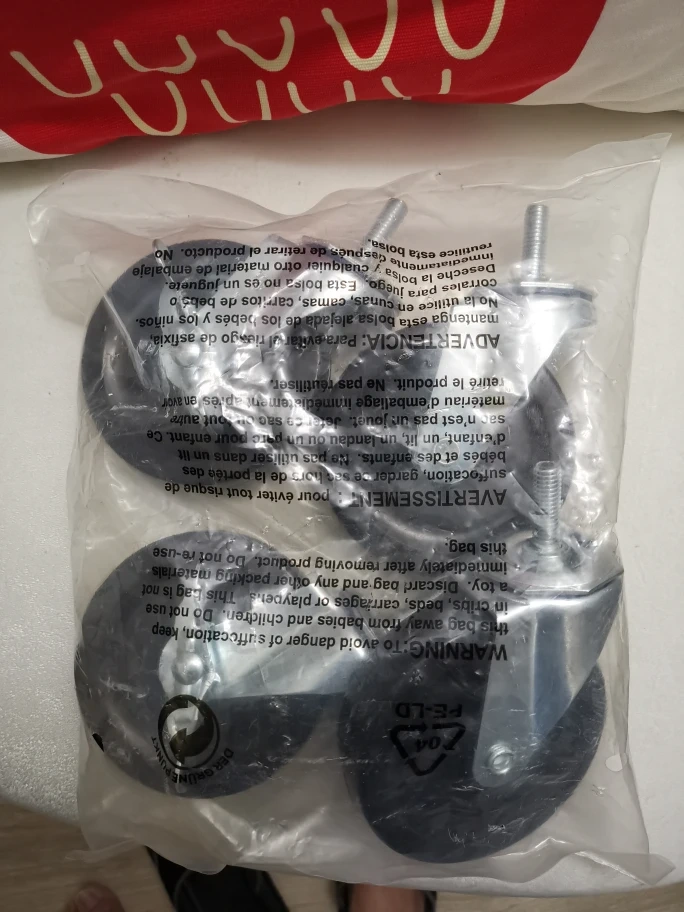 I have a set of four caster wheels still sealed in their original packaging and in new condition! They're black and ready to be installed on your furniture or other projects. Pet and smoke free home.