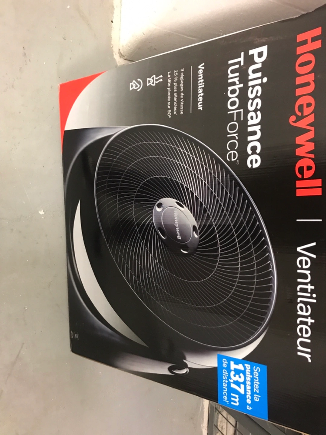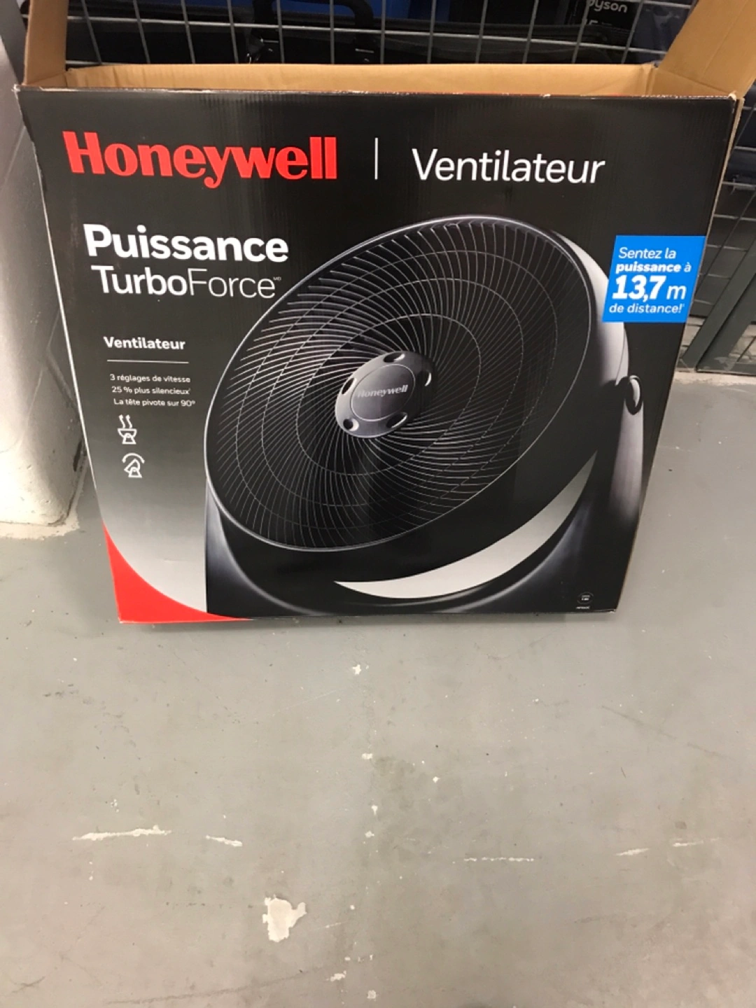 Selling a Honeywell TurboForce fan! It's in great condition and comes with the original box. This fan features 3 speed settings and operates 25% more quietly. The head pivots up to 90° for versatile airflow. Great for keeping cool during those hot summer days!