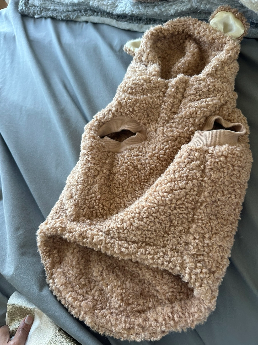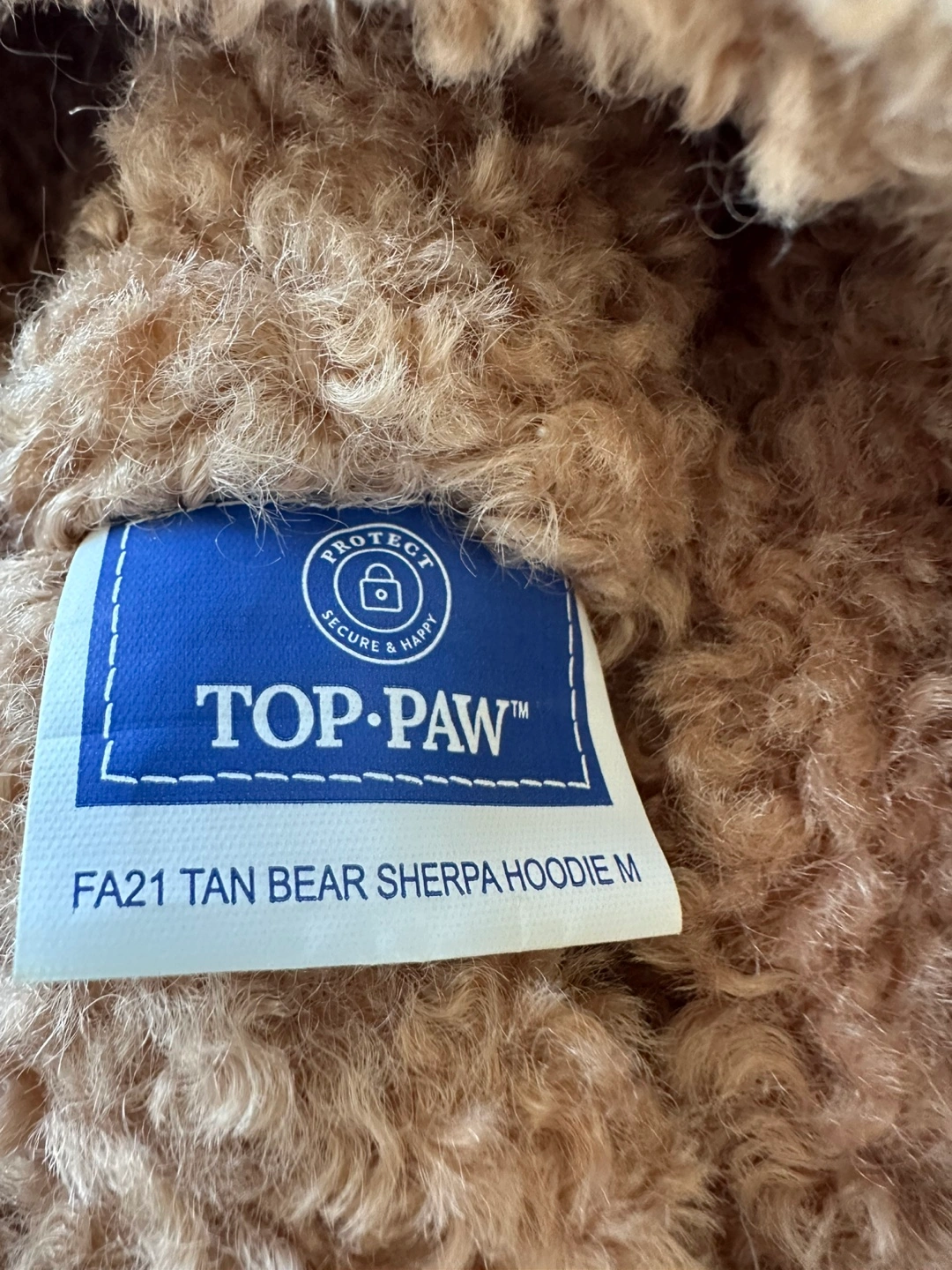 Selling a super cute Top Paw tan bear sherpa hoodie for your furry friend! It's a size medium and features a cozy sherpa material. Perfect for keeping your pup warm and stylish on those chilly days! Get a head start on the fall and winter π