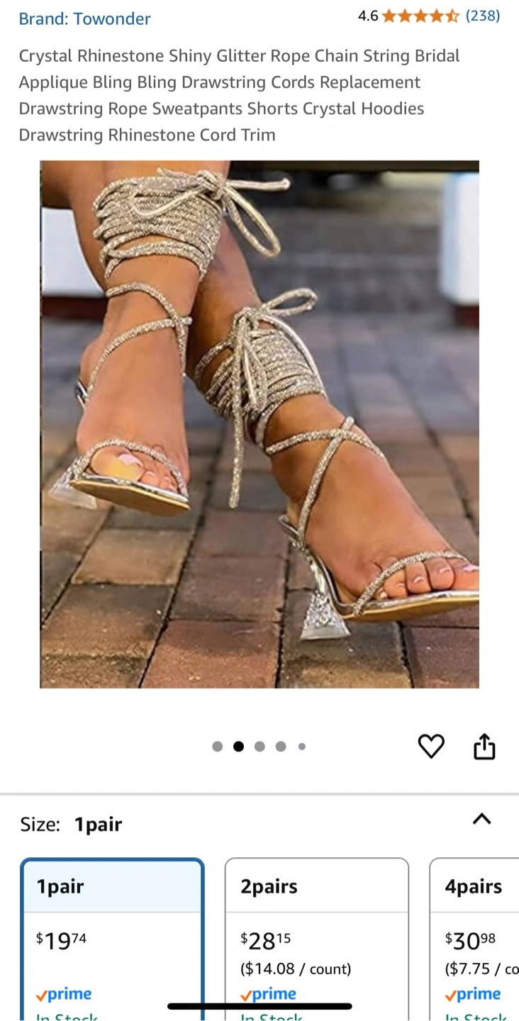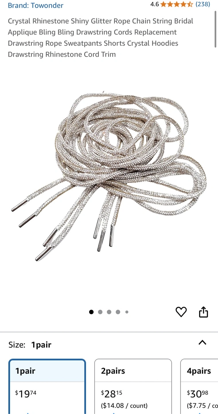 Selling a Towonder crystal rhinestone rope chain! It's a shiny glitter rope that can be used for bridal applique, drawstring cords replacement, sweatpants shorts, crystal hoodies, and drawstring rhinestone cord trim