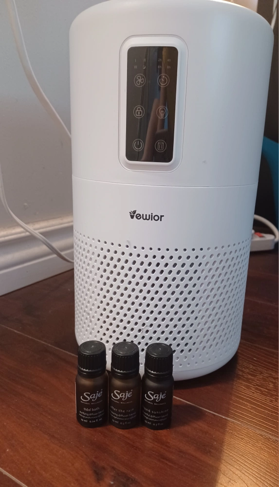Selling a Vewior air purifier that's in great condition! It comes with three Saje diffuser blends: Tidal Bath, After the Rain, and Liquid Sunshine. Diffusers have been opened but are still 3/4 full.