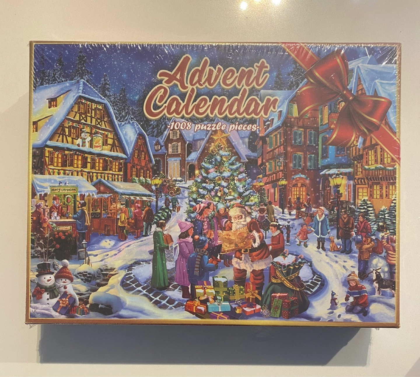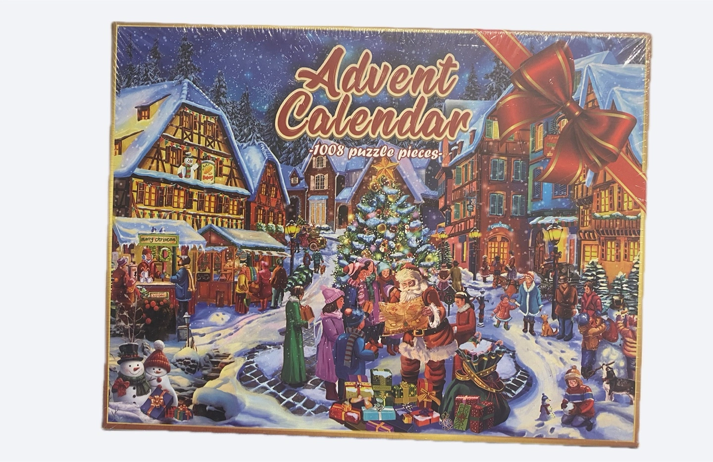 I have a brand new Advent Calendar puzzle with 1008 pieces! It's perfect for getting into the holiday spirit and enjoying some quiet time putting it together. The puzzle depicts a charming Christmas village scene. It would be a fun activity for the whole family during the holiday season