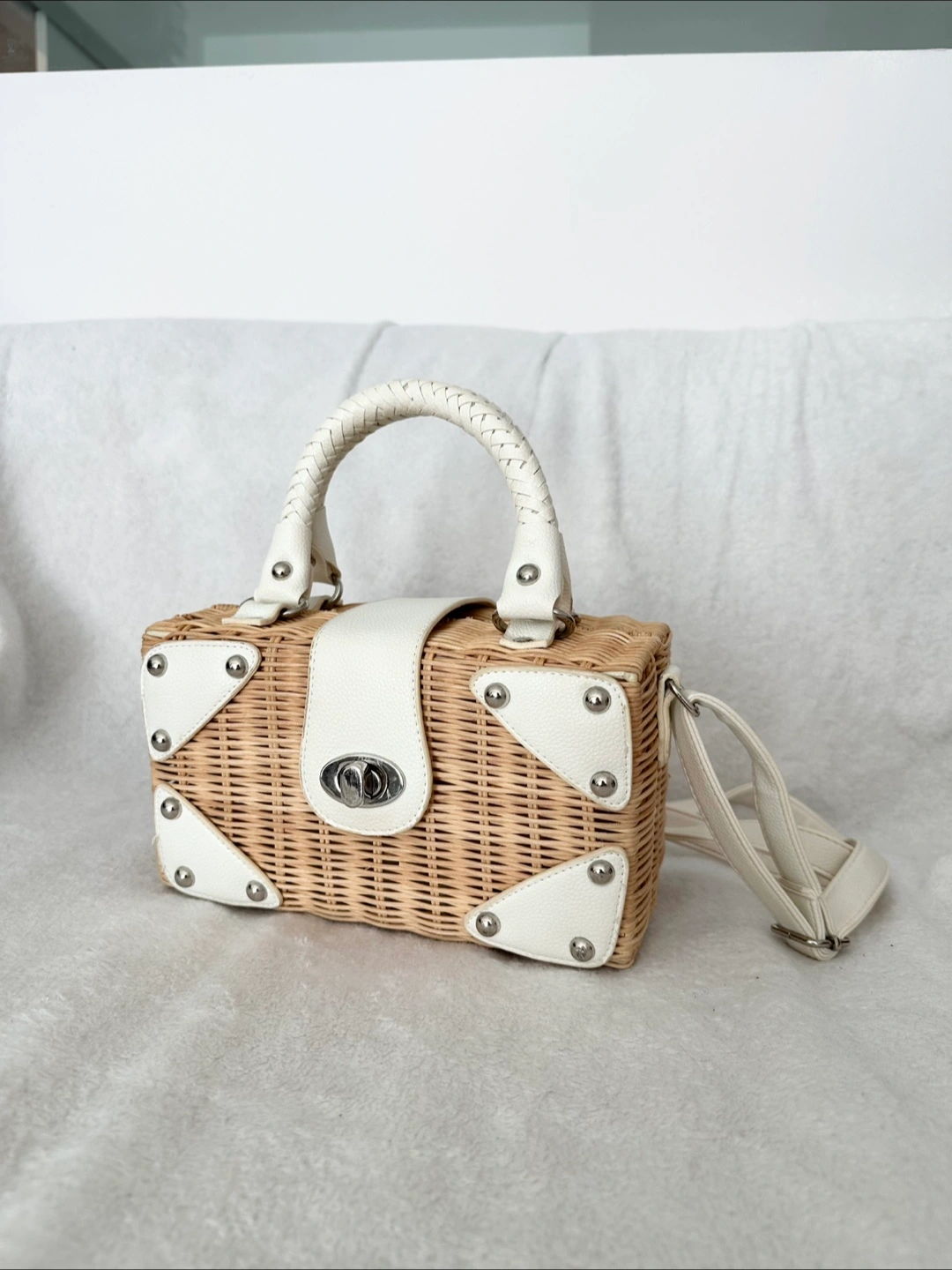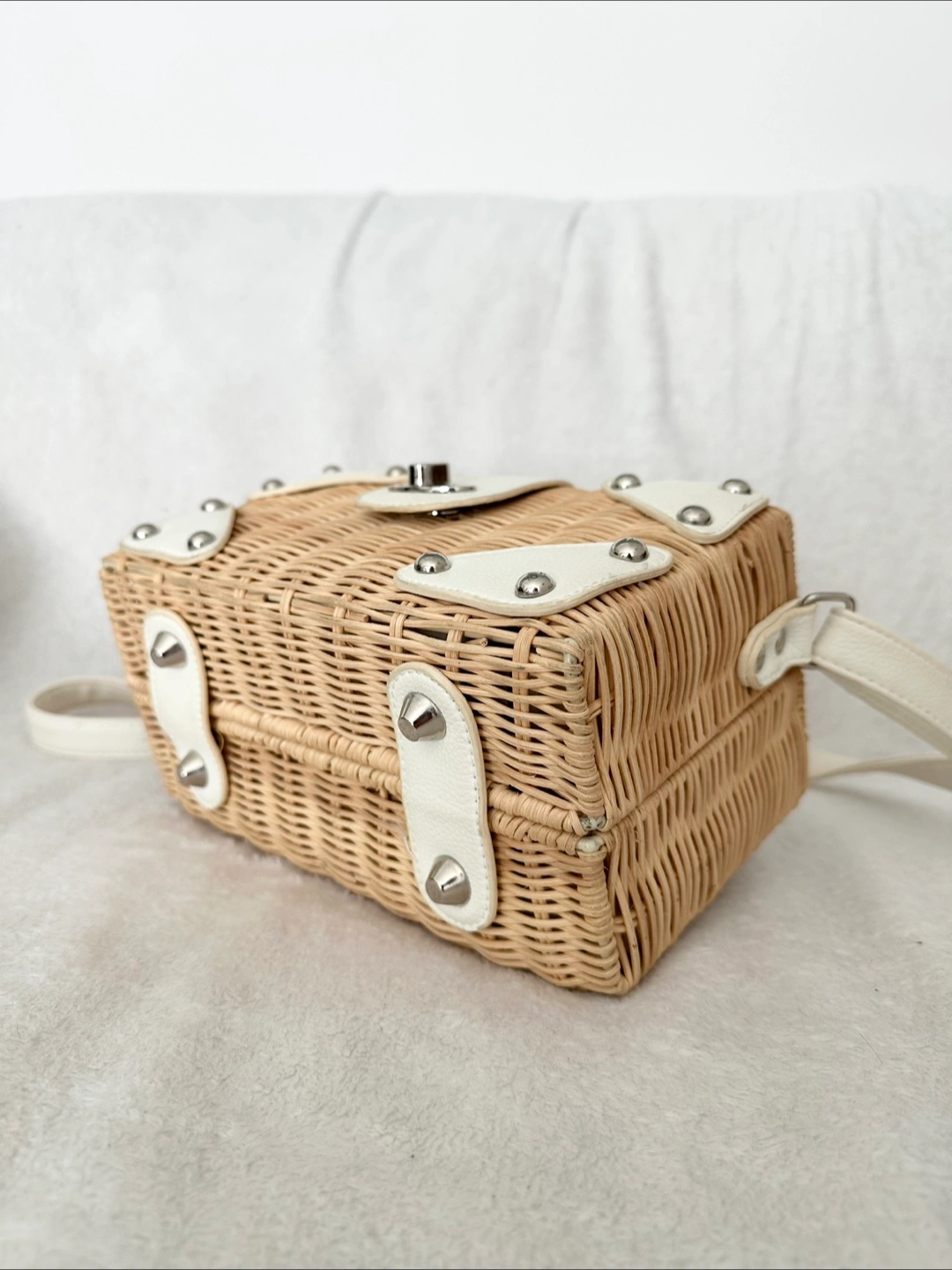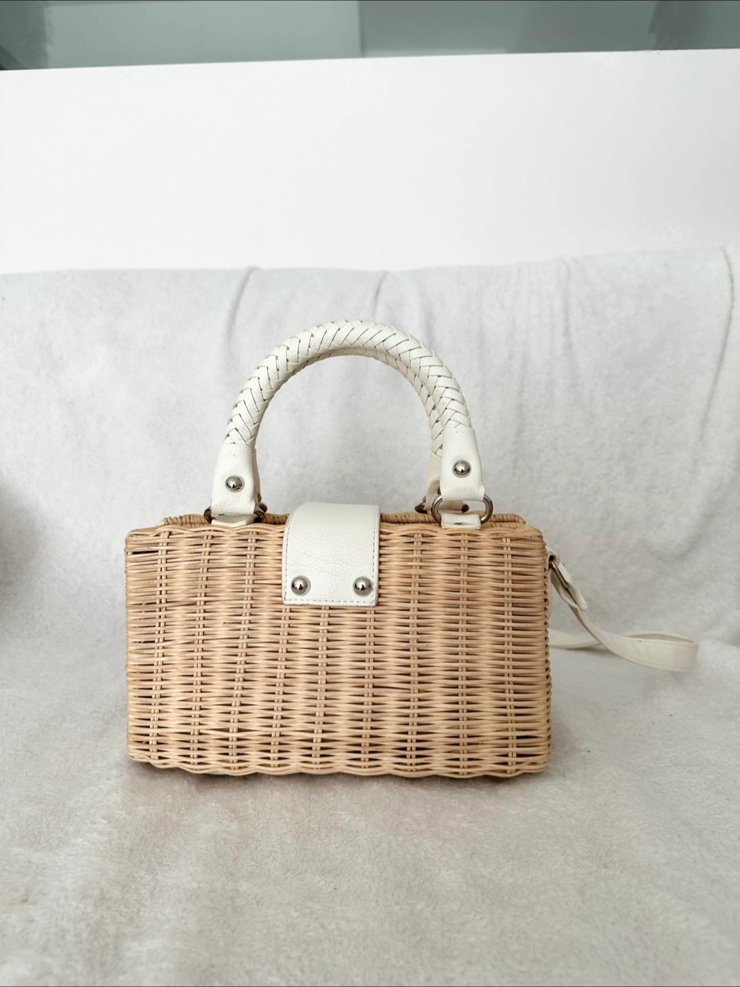 Super cute Free People wicker handbag. Purchased from the Free People store at the Eaton Centre. Can be worn as a top handle or crossbody bag. It's in good condition with minor wear and tear. Can be picked up near the Eaton Centre. Cash only.