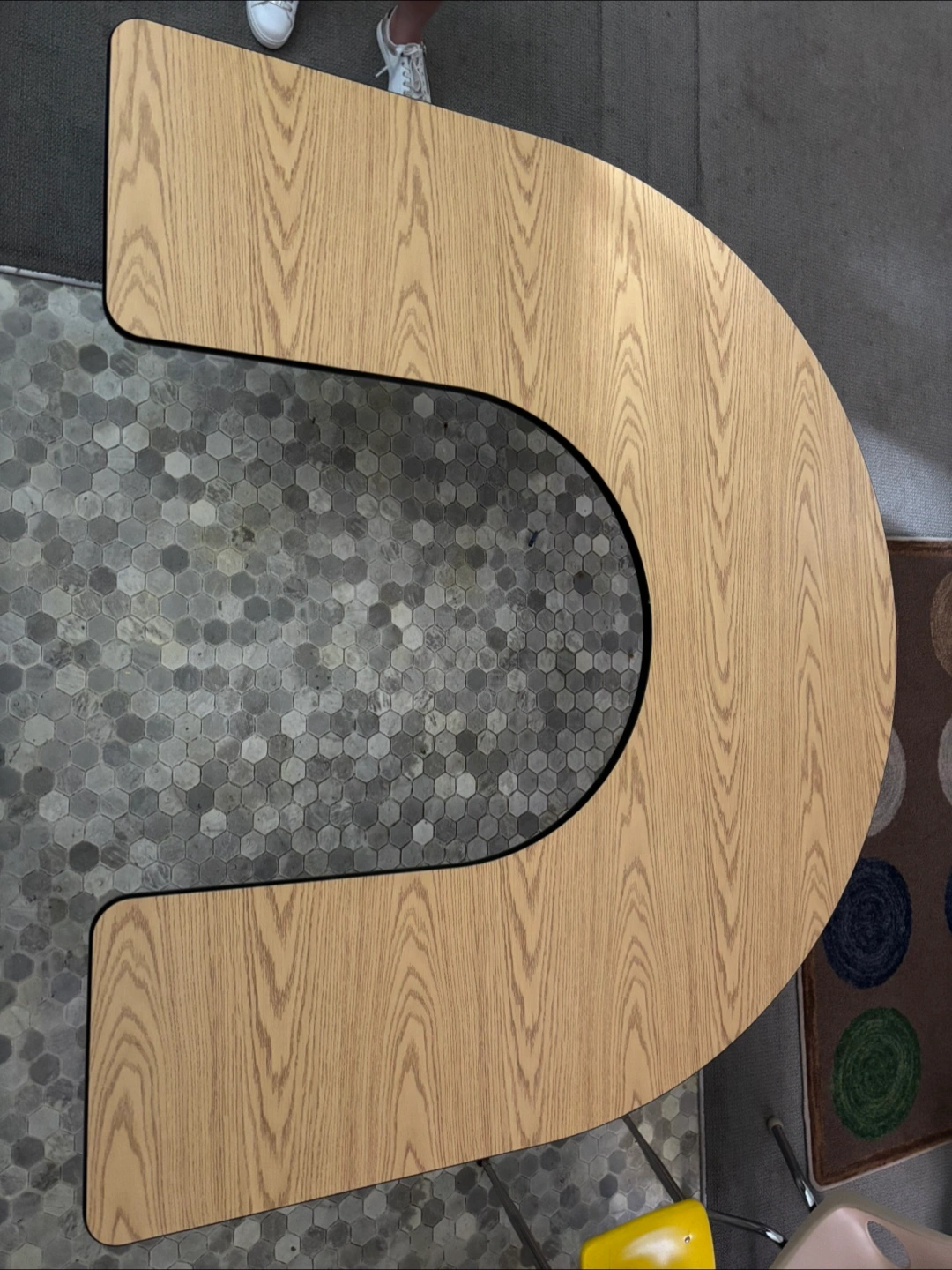 Giving away a wooden horseshoe shaped sturdy preschool table. It's in great condition and sells for over $600. It measures about 65 inches wide and 61 inches long and the height is adjustable. Need it to be picked up ASAP
