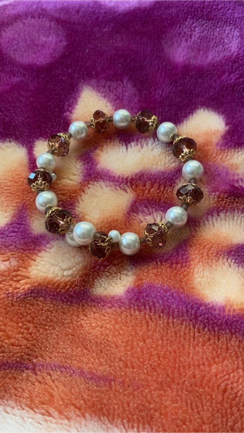 Selling a beaded bracelet with pearl and brown coloured beads! It's in great condition and would make a lovely addition to any outfit
