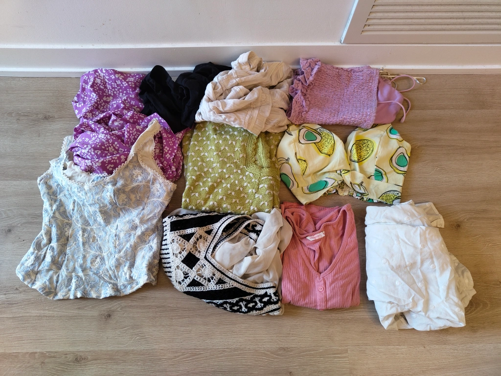 📍 Pickup Location: 319 Jarvis St Decluttering my closet – grab this bundle of cute tops! Perfect for everyday wear, lounging, or craft projects. ✨ Details: 10 assorted tops in sizes Small and Medium Mix of styles, colors, and fabrics (prints, lace, knits, lightweight cotton) All gently used and clean Packed in a reusable No Frills bag – yours to keep ✅ Condition: Overall good used condition. A few may have light signs of wear. ♻️ Pickup only.