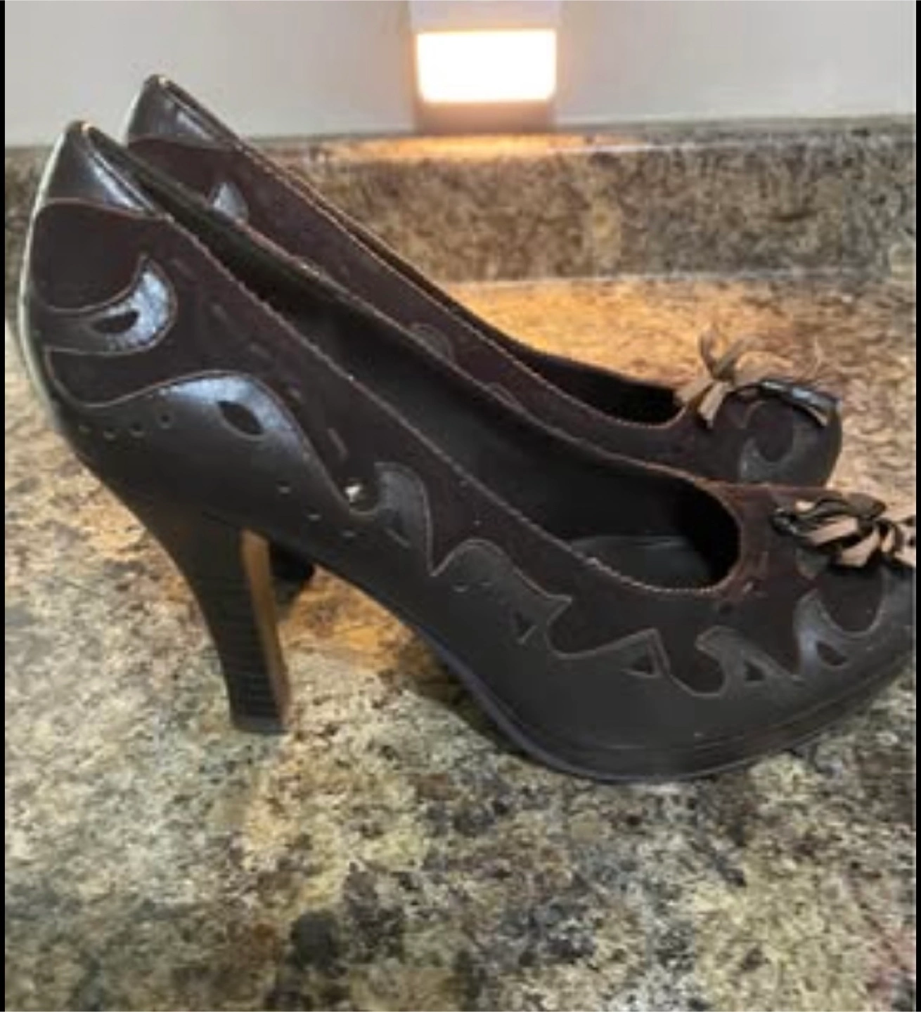 Cute pair of Dollhouse heels in a dark brown colour! They're a size 7.5 and have a unique design with a small tassel on the front. Perfect for adding a bit of flair to your outfit! Worn once
