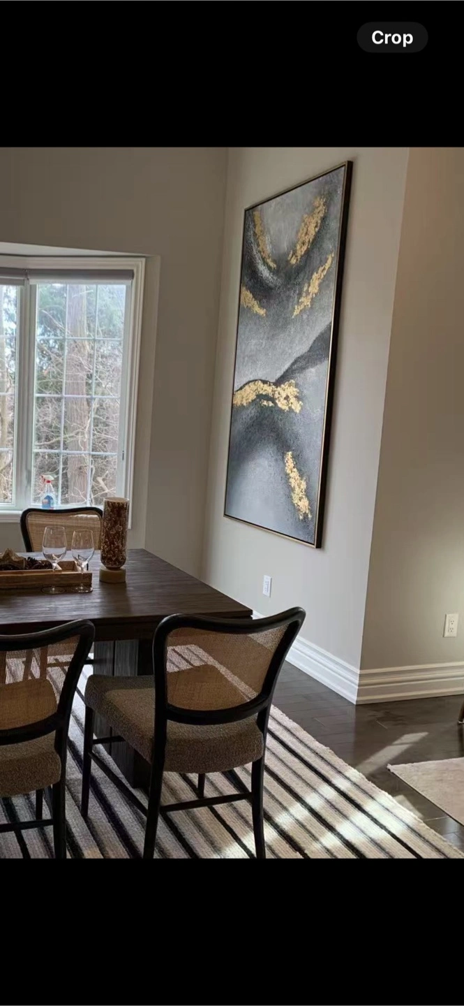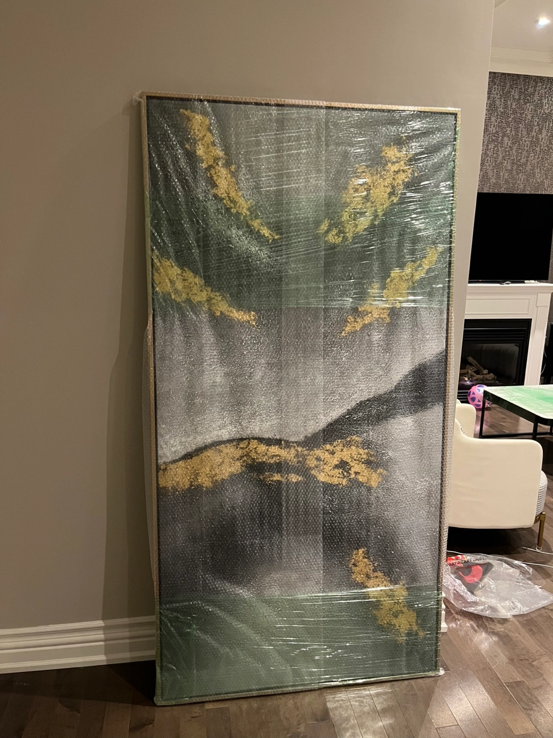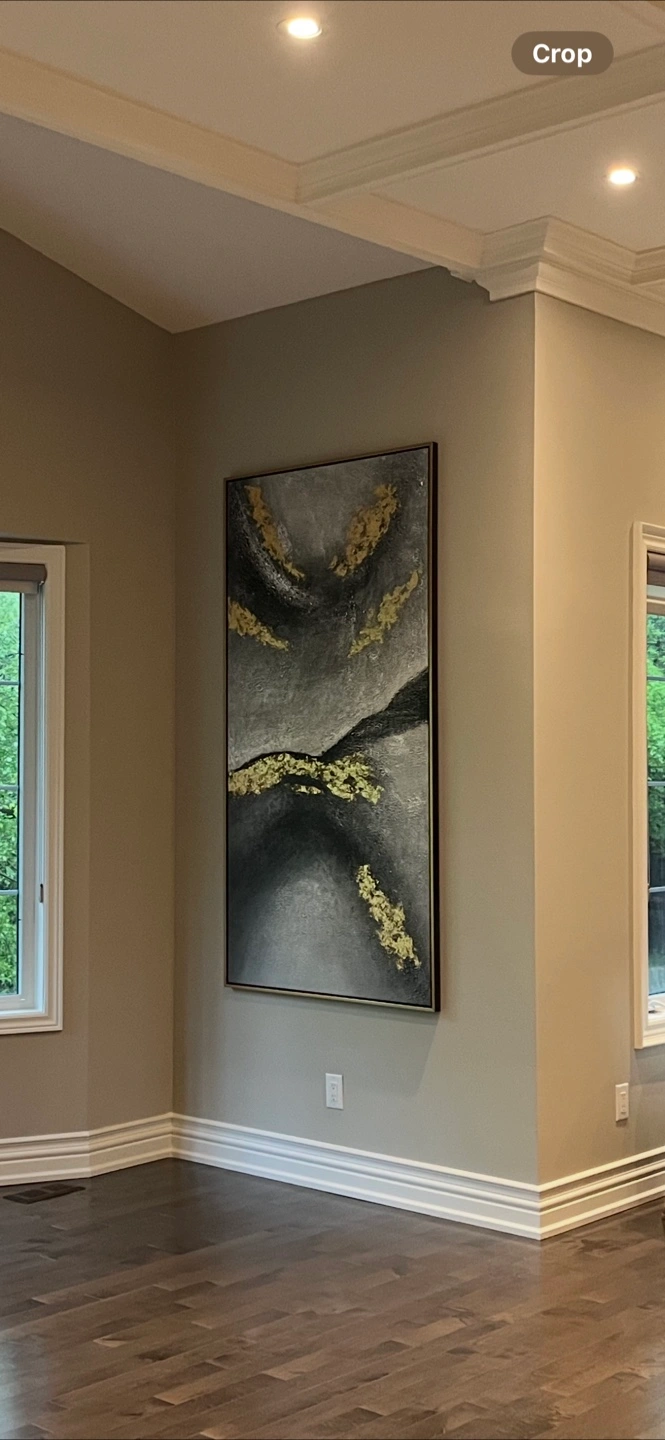 Selling a beautiful piece of abstract wall art with gold and grey accents. It's in great condition and would look lovely in any room. The artwork features a modern design that adds a touch of elegance to your home decor. Very large. Original purchase price: $1500