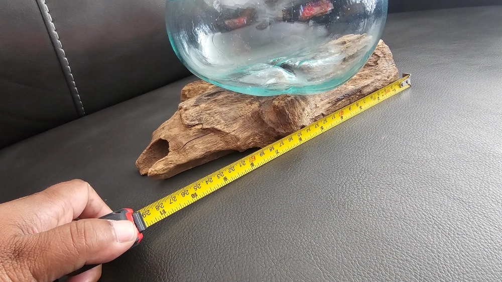 This is a unique melted glass bowl set atop a piece of driftwood, perfect as a decorative centrepiece. The glass has a lovely, organic shape from the melting process, and it sits perfectly balanced on the wood base. It measures approximately 8 inches across. I believe it would look amazing in a beach house or cottage! * Diameter: Approximately 8 inches * Material: Recycled Glass, Driftwood * Style: Unique, Decorative Given that advertisements are like fleeting whispers in the digital wind, if this ad is still up, then yes, the bowl is still available!
