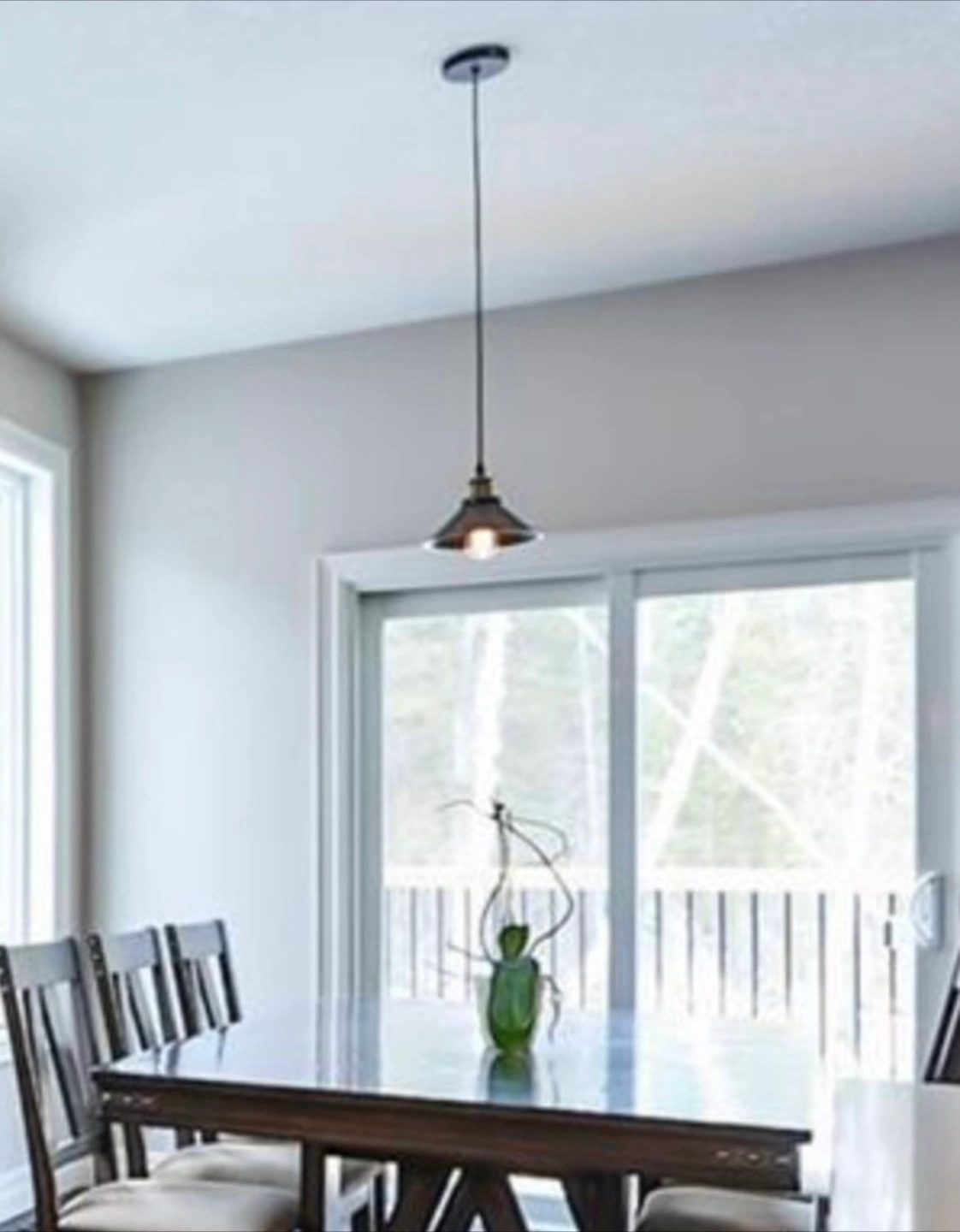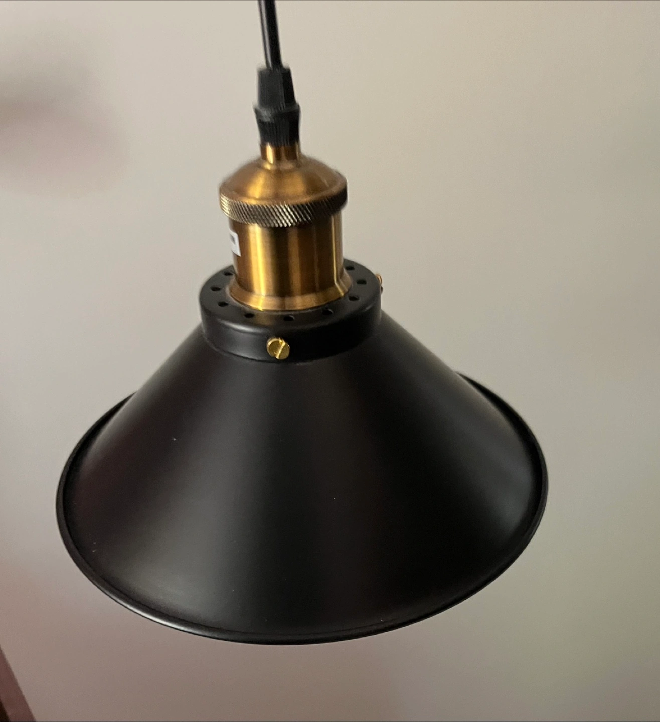 Selling a stylish industrial pendant light featuring a black shade and brass accents. It's in excellent condition - like new and comes with all the necessary mounting hardware and components, as shown in the pictures. Perfect for adding a touch of vintage charm to any room! (Similar item sells online for $100- see attached photo for price comparison) non smoking & no pet household