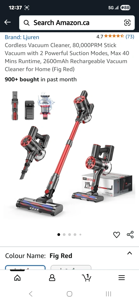 Selling a Ljuren cordless vacuum cleaner in fig red! It has powerful suction modes and a rechargeable battery. The box includes the vacuum and instruction manual.