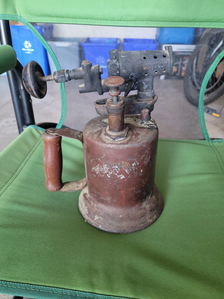 Selling a vintage blow torch. It shows signs of wear and age, but could be a cool restoration project or a unique decorative piece for your workshop or garage