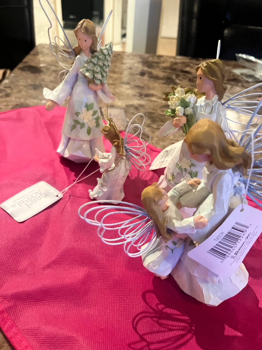 Here are some lovely Enesco angel figurines. They would make a great addition to your collection or as a gift! With tags brand new no chips or cracks sold together or separately Collectable Andes ceramic Angels 5.00 Or 15.00 if all 4 Great gifts with tags
