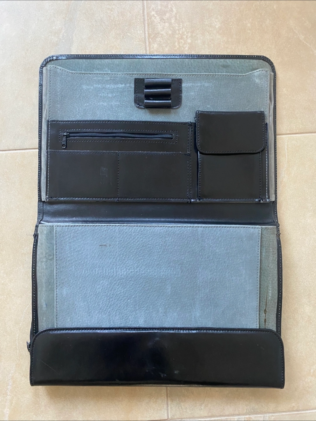 Selling a leather portfolio. It has a zipper closure and interior compartments for organizing documents and accessories. It's in excellent condition and ready for a new owner!