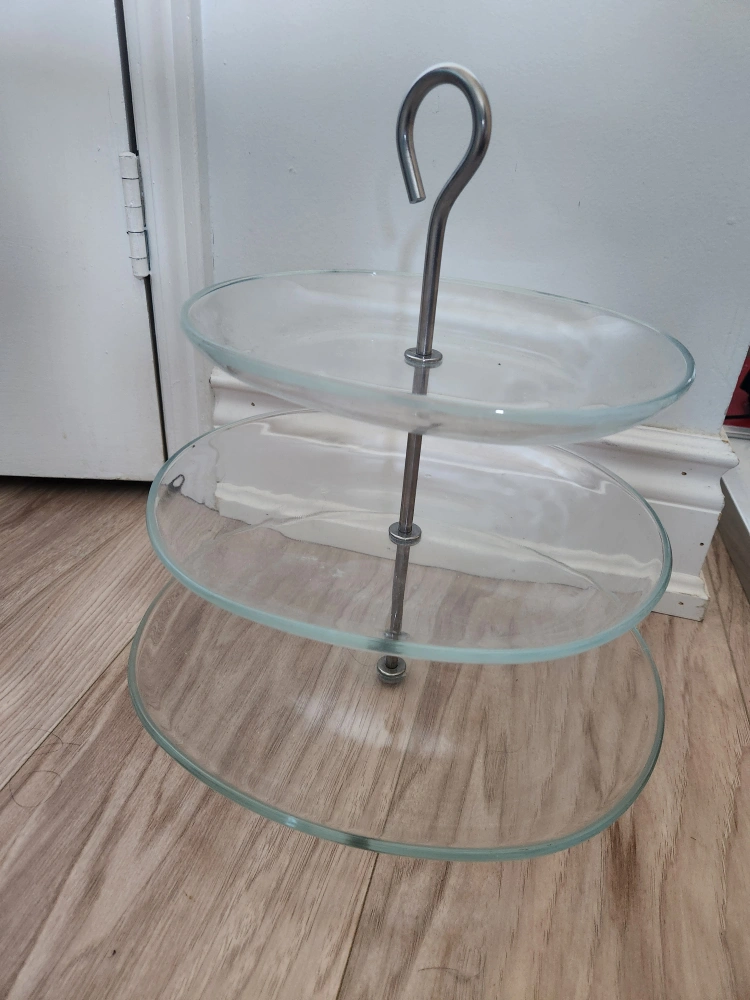 pick up at 40 Lavery Trail Scarborough or 280 Donlands Avenue. Selling a handy 3-tier glass serving stand! It's perfect for displaying snacks, desserts, or appetizers at your next get-together. It's in great condition and ready to add a touch of elegance to your table