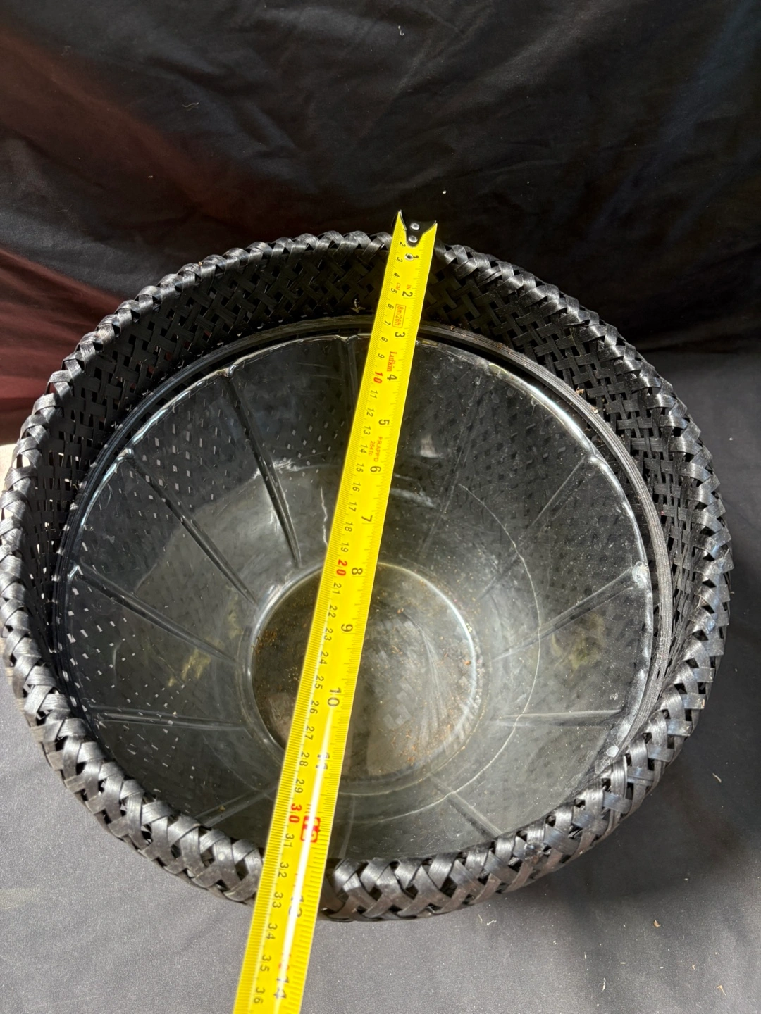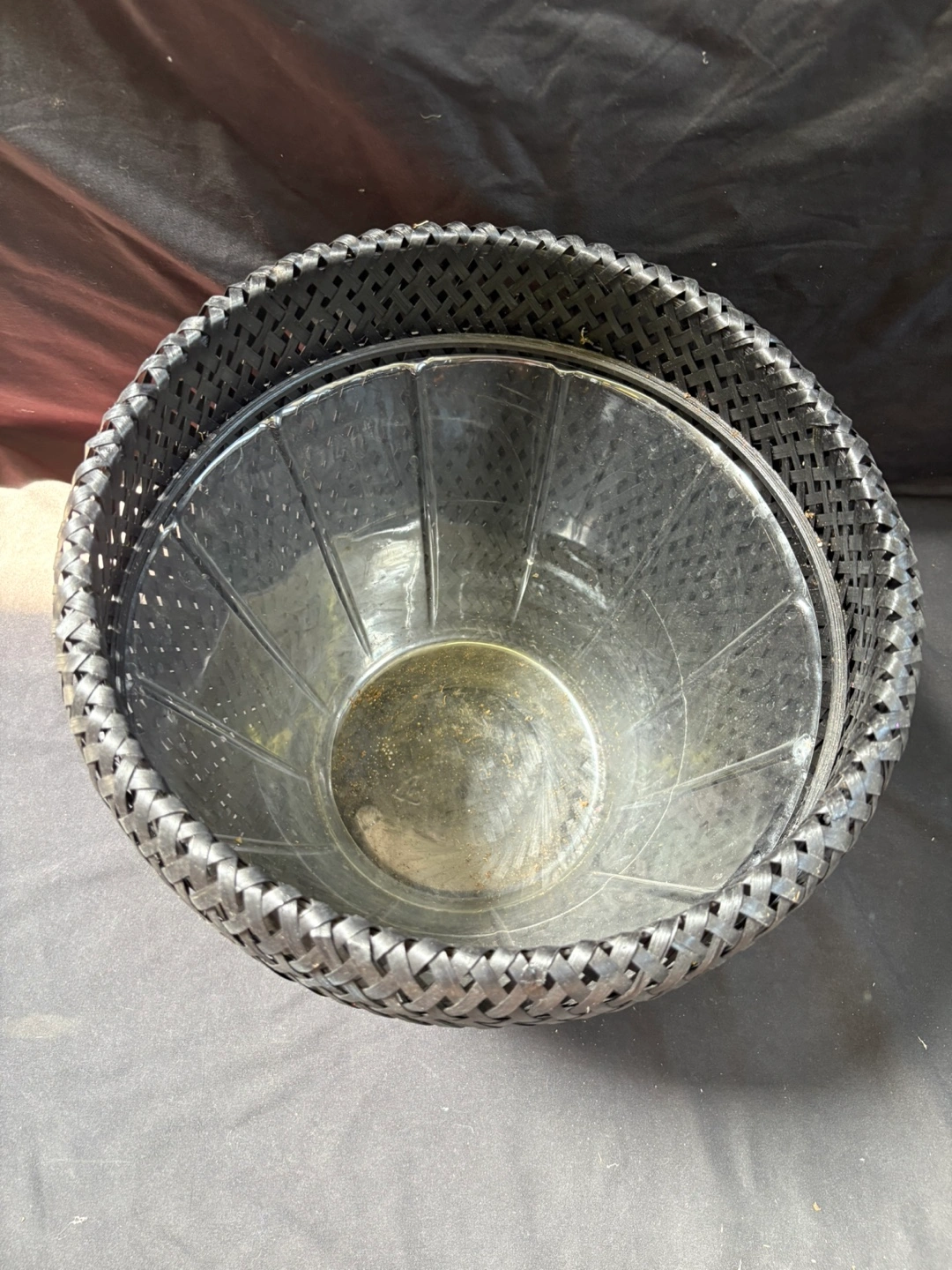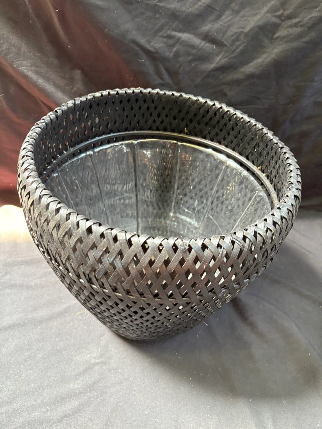 good condition Black Woven Basket with Liner Here's a stylish black woven basket that would look great in any room! It comes with a clear plastic liner, so it's perfect for plants or other decorative items. It's in excellent condition and ready for a new home $1 Pick up Victoria park & O’Connor area