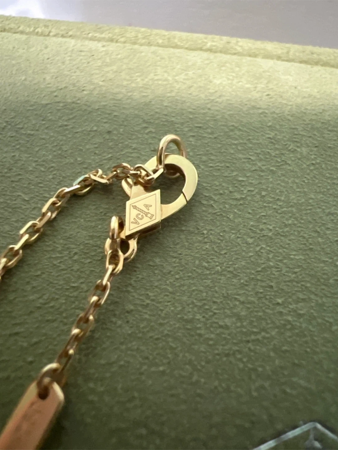 Selling a beautiful Van Cleef & Arpels 18K gold Alhambra gold guilloche necklace. It comes with its original box and is in excellent condition. This classic pendant features the signature clover motif and would make a perfect addition to any jewellery collection! Current retail price with taxes at Van Cleef: $6,440.00 CAD