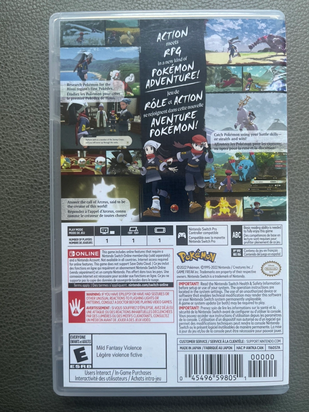 Selling a copy of Pokemon Legends: Arceus for the Nintendo Switch! It's in great condition and ready for a new home. Explore the Hisui region and catch 'em all!