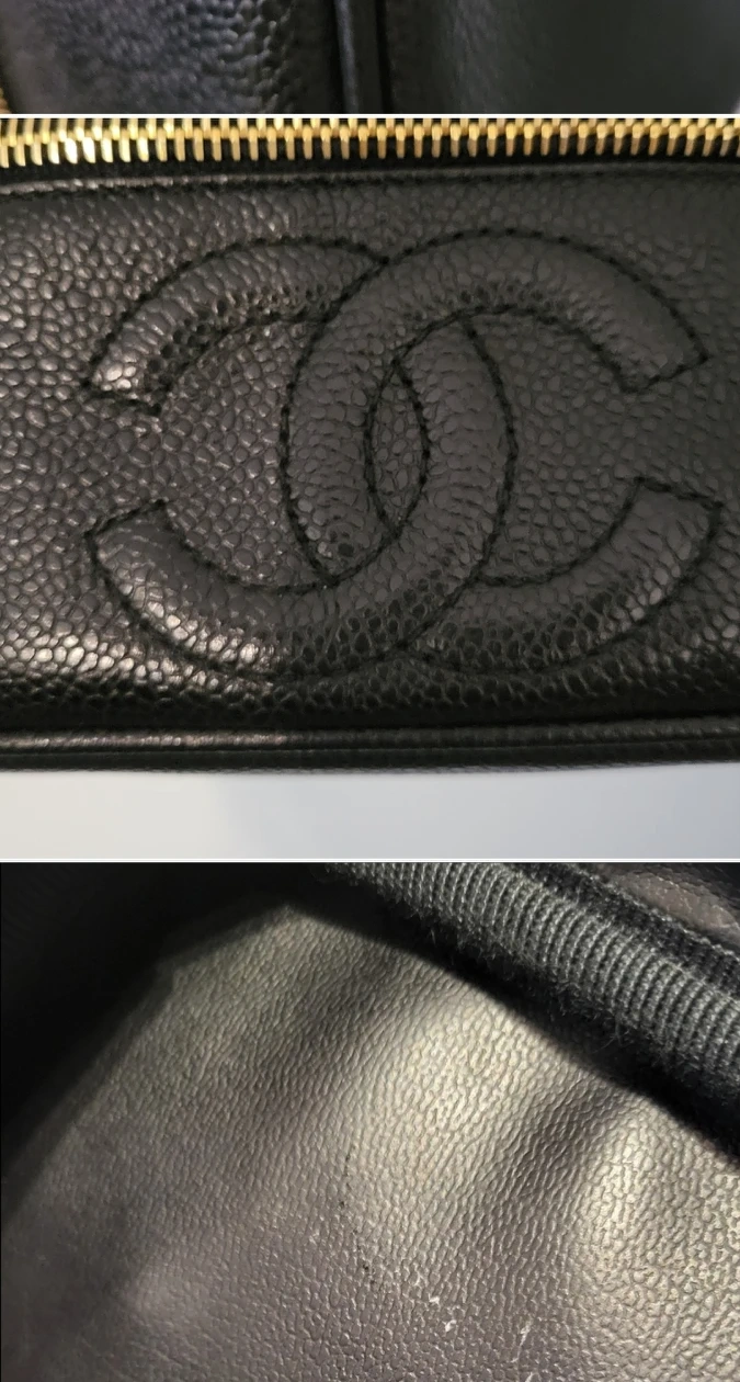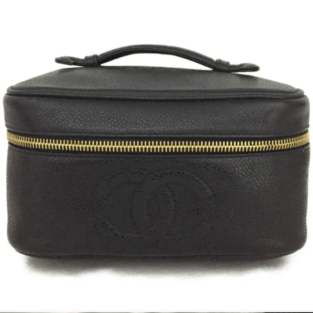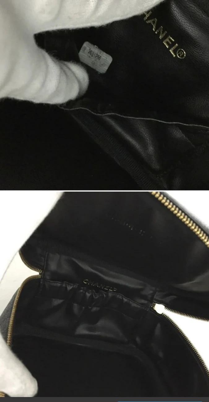 VERY RARE Excellent condition Vintage Caviar CC Logo Vanity/Makeup bag/Cometic bag in black Caviar. Serial: 3631856 approx size: 9"L x 5"D x 4.5"H Very clean interior with a small mark inner lid (photo makes it look worse than it is). Purchased from Japan.