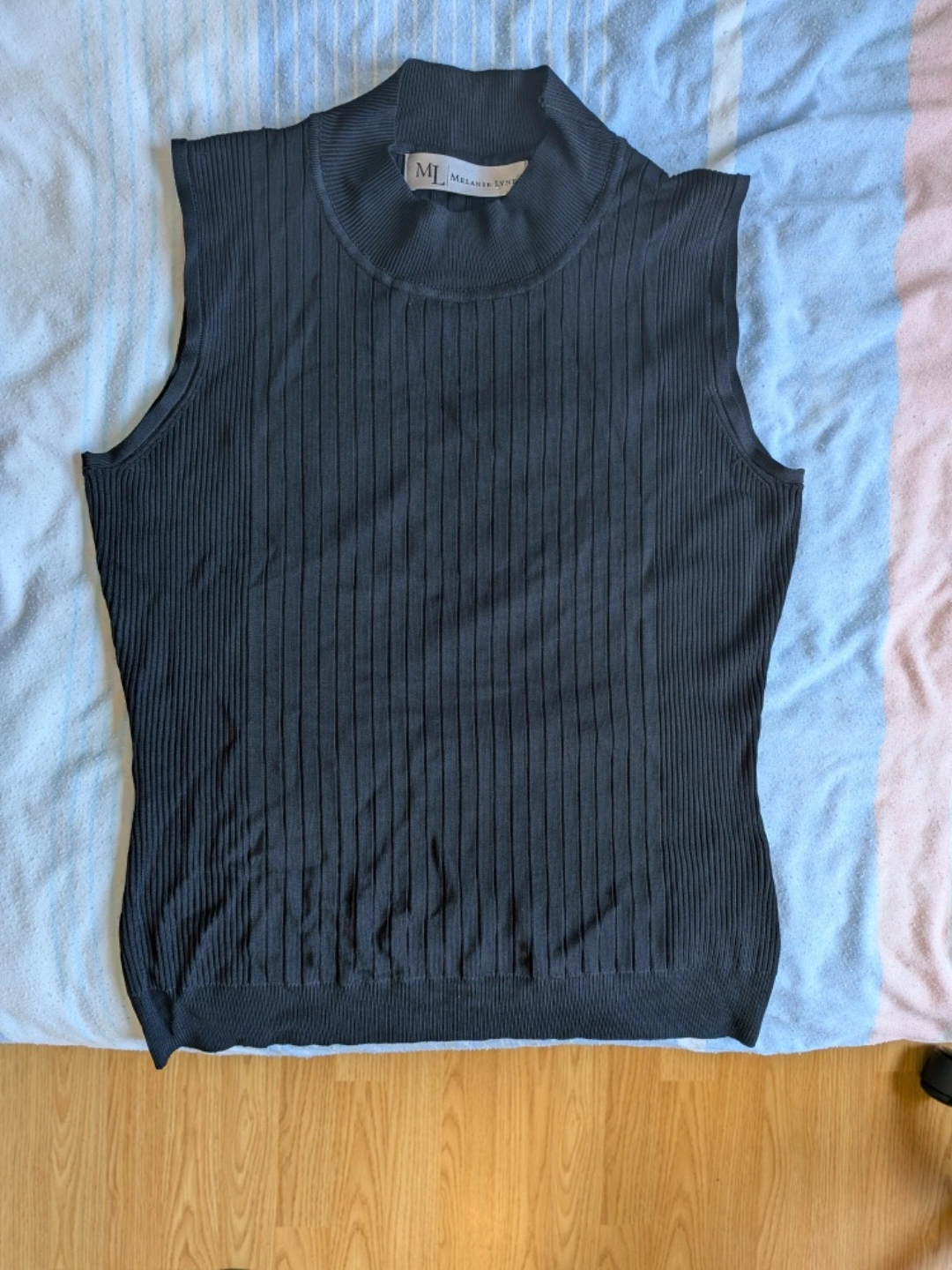 Selling a black sleeveless knit top from Melanie Lyne. It's in great condition and perfect for layering! The size is L/G and it's made of 80% rayon and 20% nylon - BUY ONE $5 ITEM AND GET ANOTHER $5 ITEM FOR FREE!
