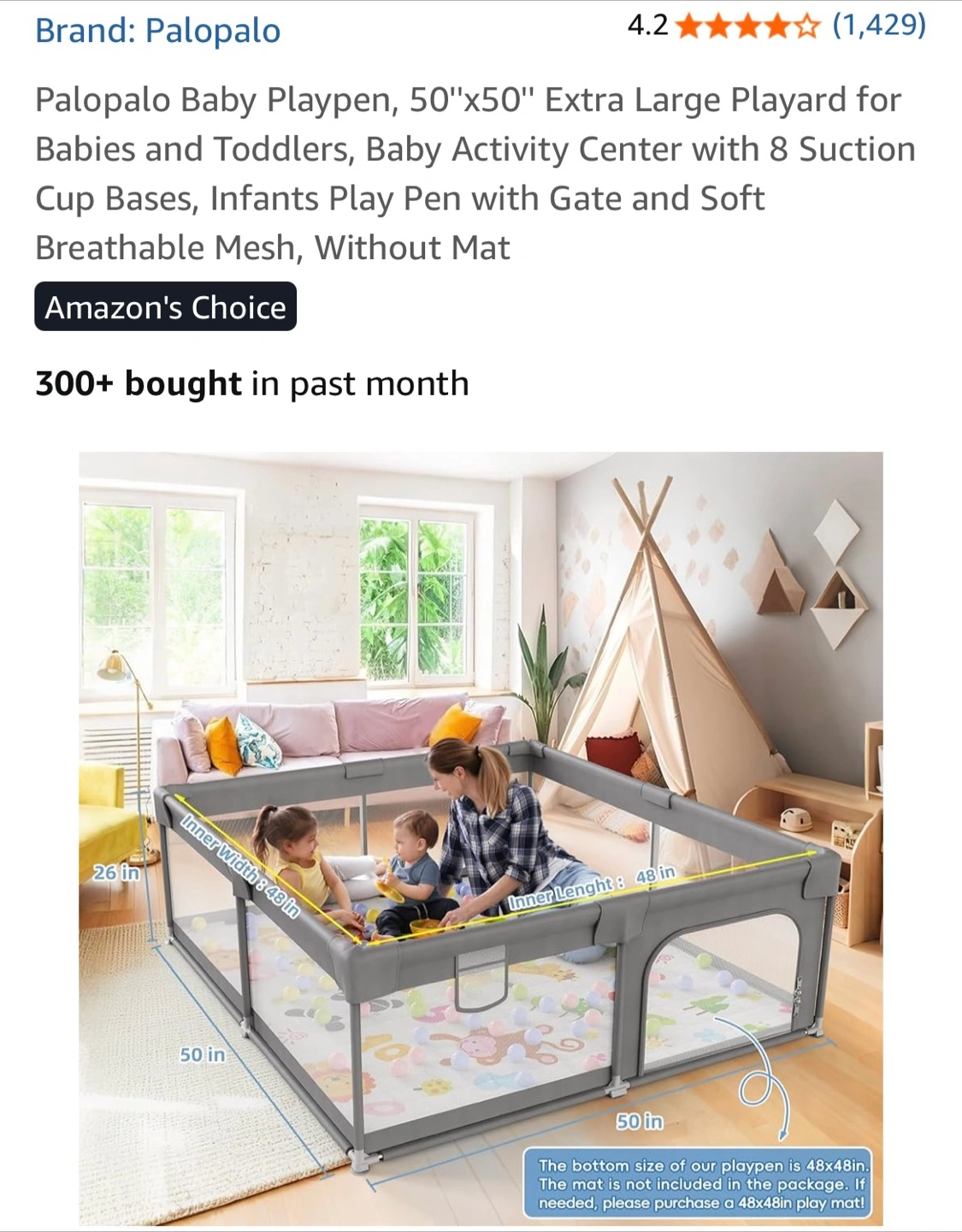 Palopalo Baby Playpen, 50''x50'' Brand New in Box. Grey. $40 firm. Reg. Price $70 +HST