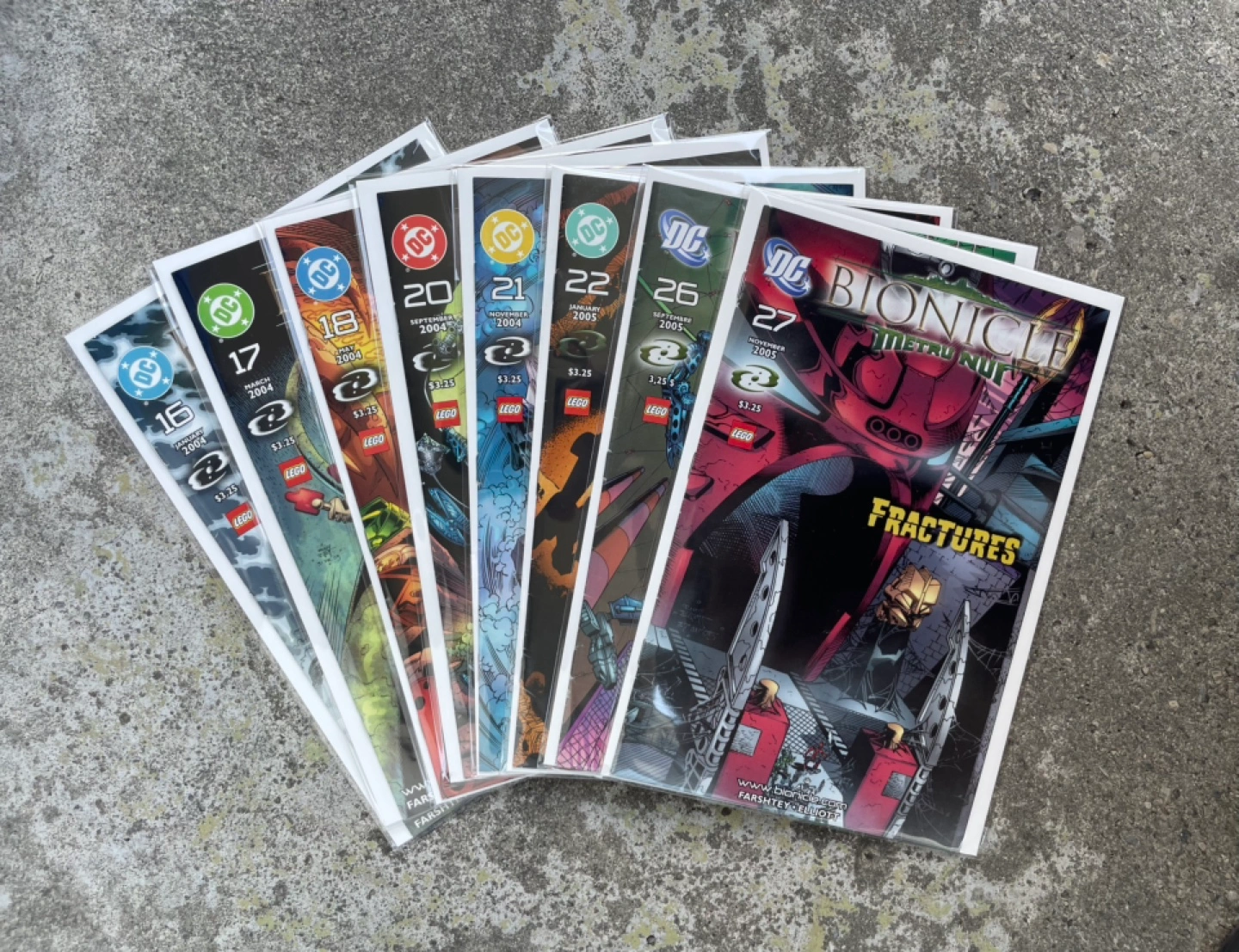 Selling a collection of Bionicle comic books published by DC Comics in collaboration with Lego. These comics feature the Metru Nui storyline. Great for Bionicle fans and collectors!