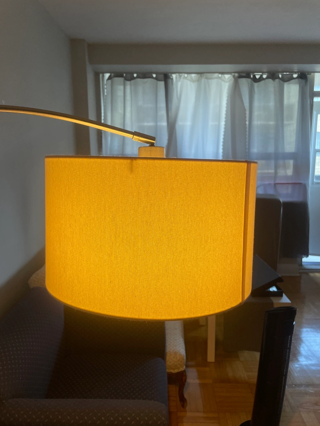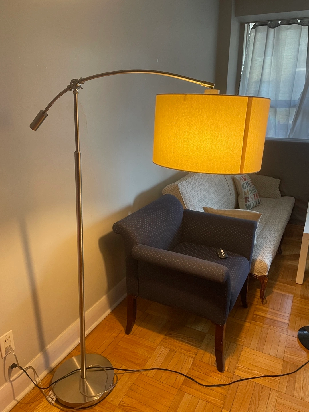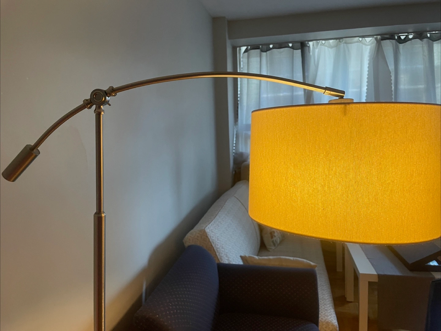 Here's a stylish arc floor lamp! It features an adjustable arm so you can direct the light exactly where you need it. It's in great condition and would be a lovely addition to any living space