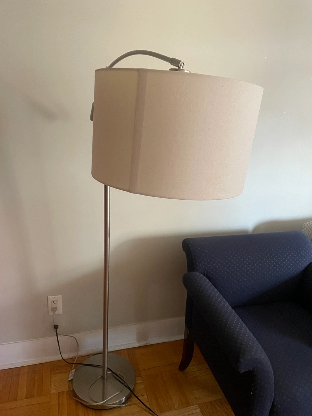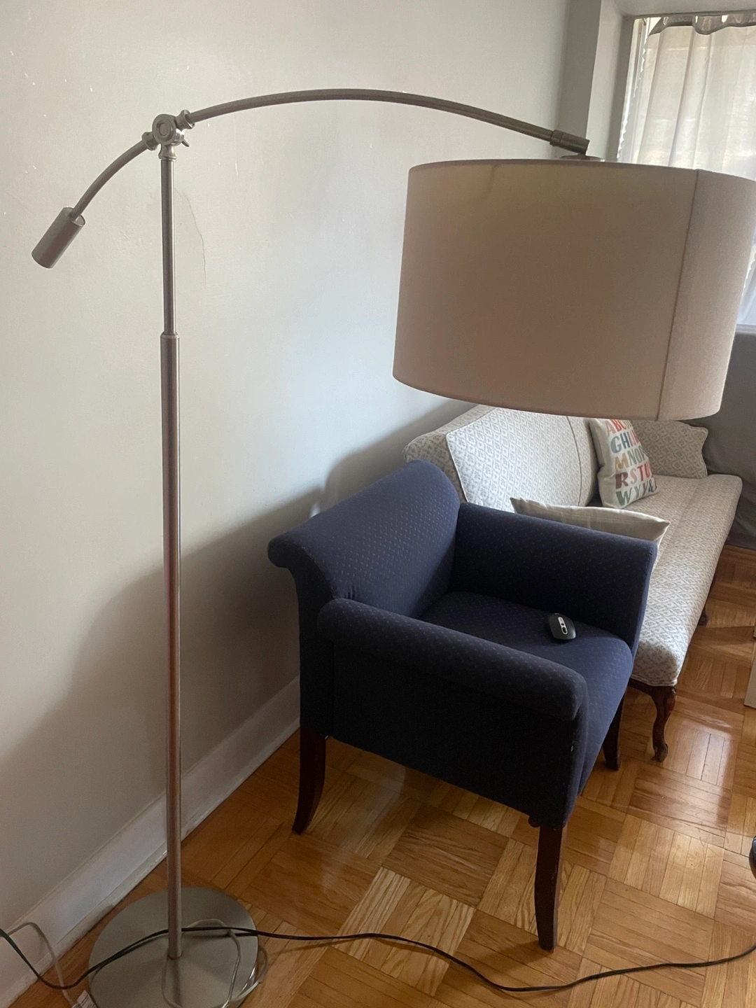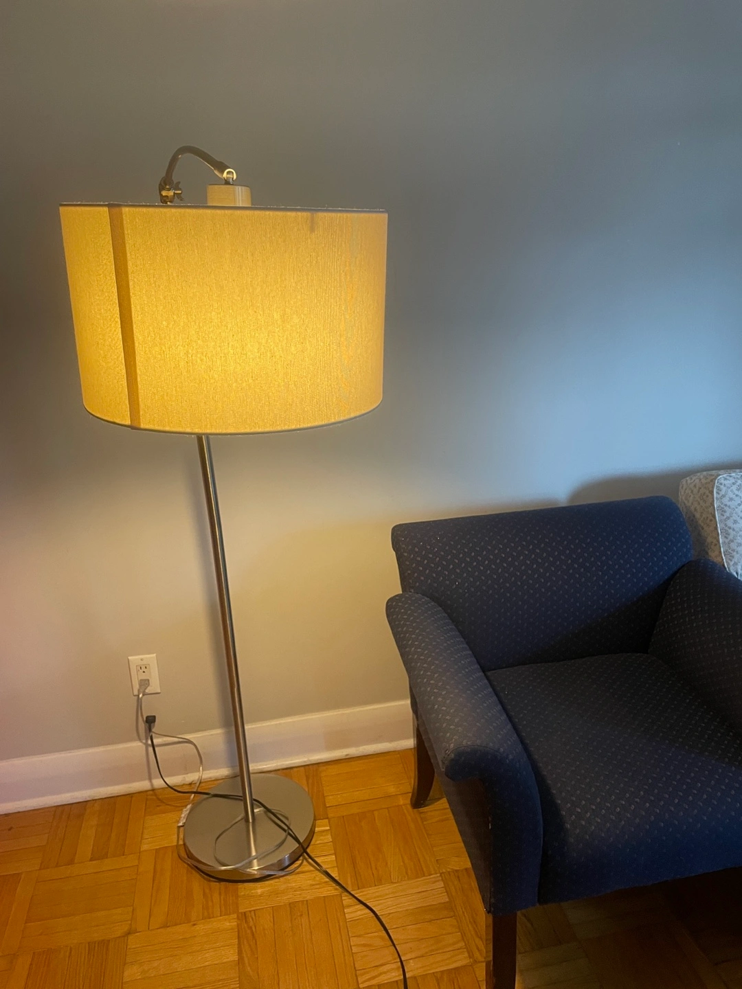 Here's a stylish arc floor lamp! It features an adjustable arm so you can direct the light exactly where you need it. It's in great condition and would be a lovely addition to any living space