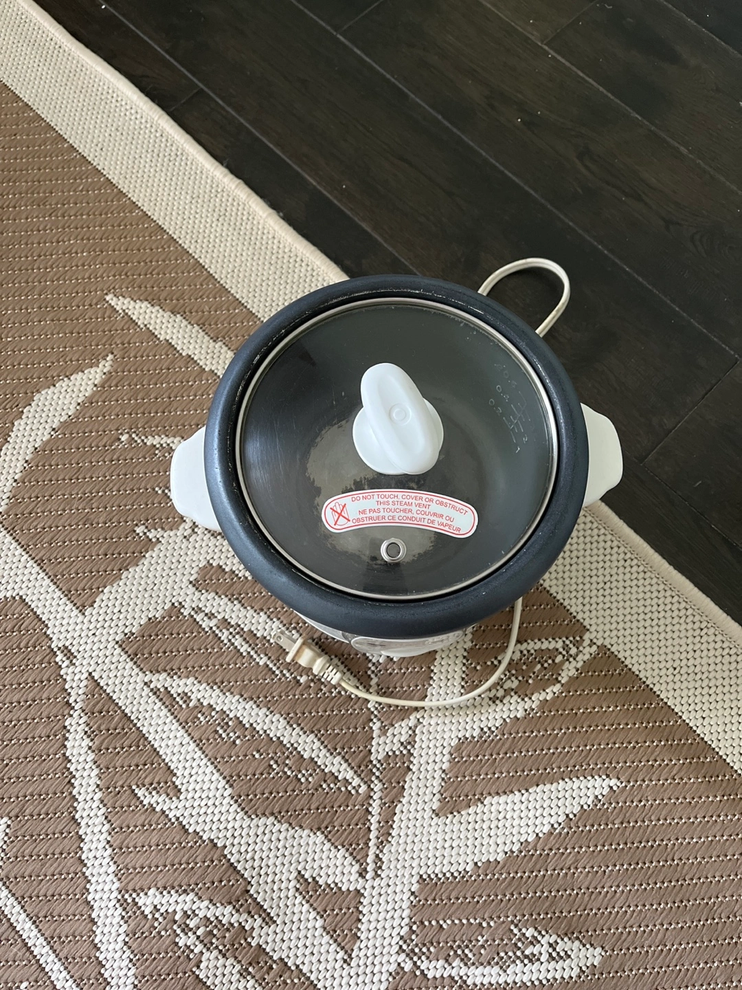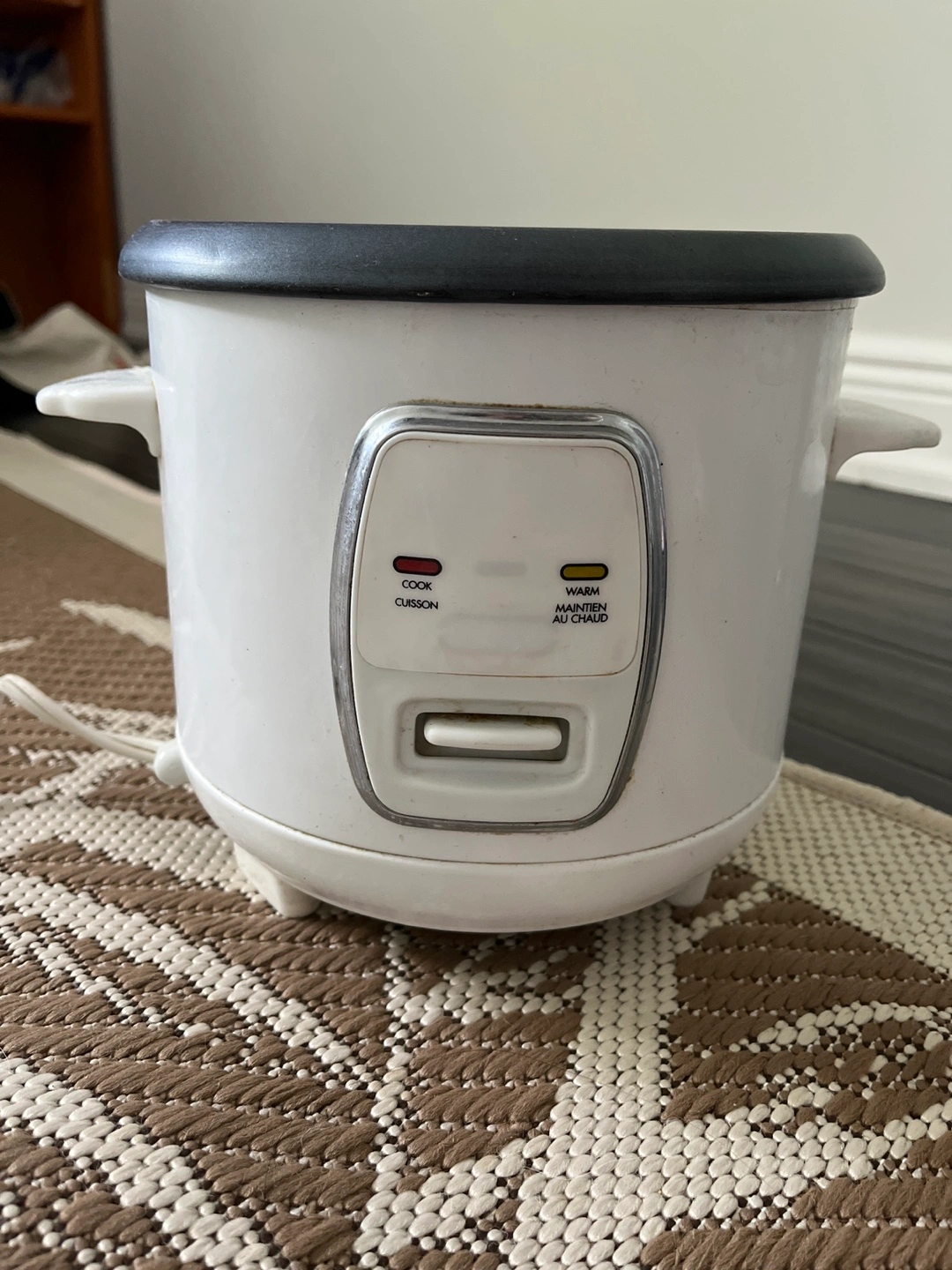 Selling a small rice cooker. Fast cooking. It's in used condition, wear in the bottle on the pot.