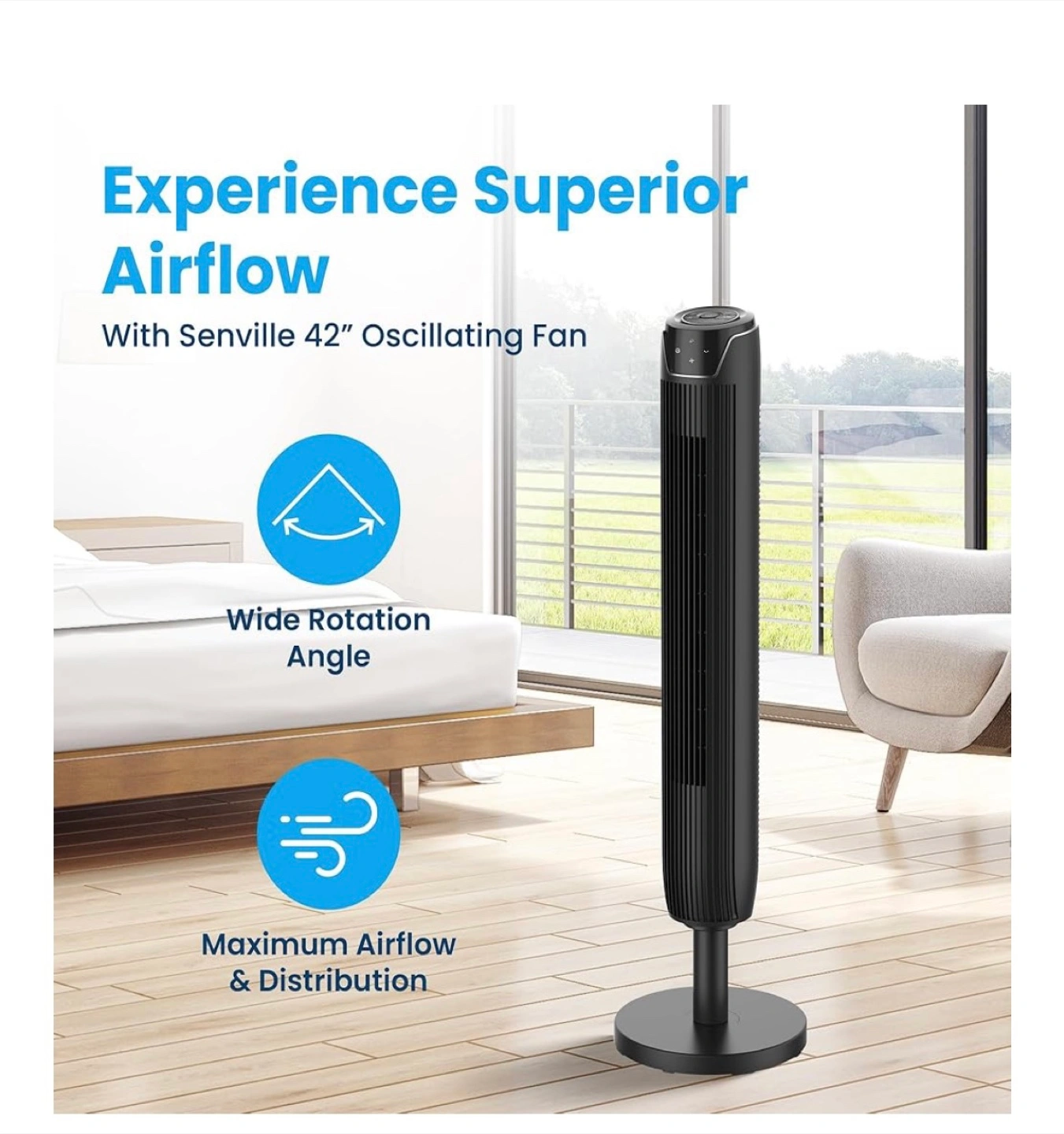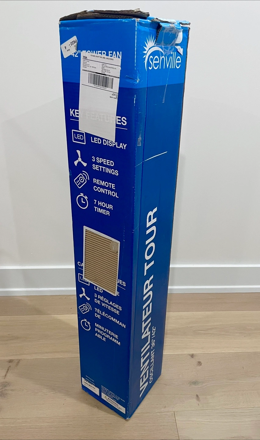 Senville 42" Oscillating Tower Fan with Remote, Bladeless, Quiet, Black. New in Box - Never Used. $55 Reg. Price $90 +HST