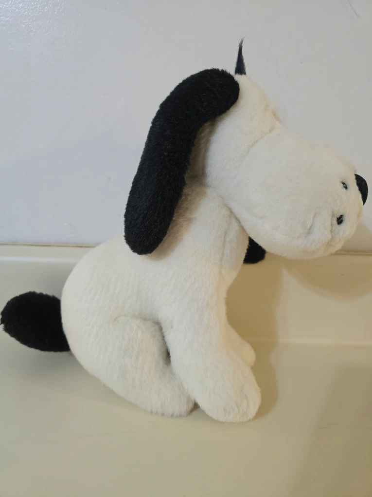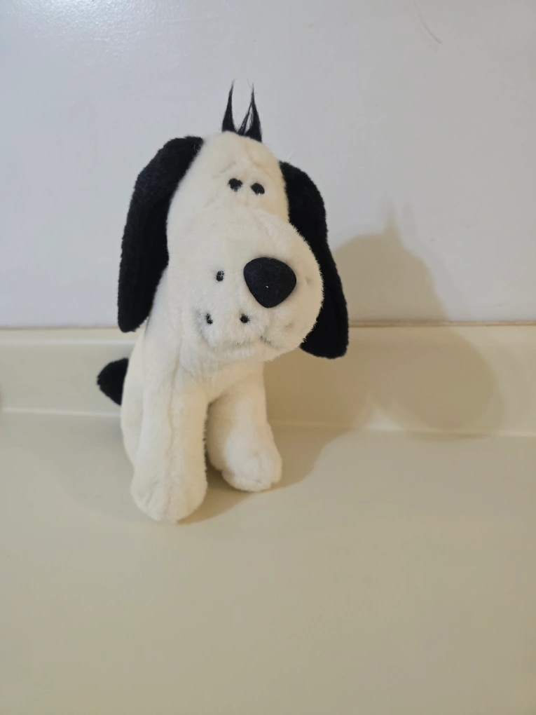 Selling a super cute plush dog toy! It's in great condition and would be perfect for a kiddo or dog lover. It's mostly white with black ears and tail. A sweet addition to any toy collection!