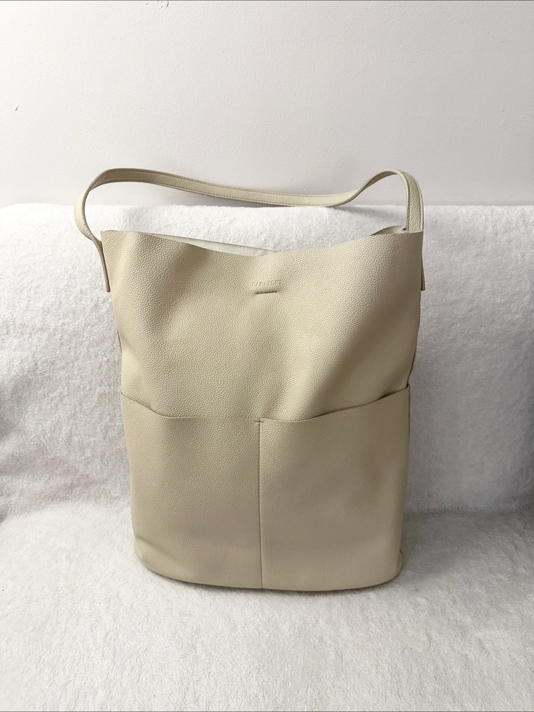 Authentic Oat + Fort everyday tote bag, crafted from soft, supple vegan leather. Purchased from the Oat + Fort store on Queen street. Overall still in great condition with some normal wear and tear. •Can be picked up at the Eaton Centre. Cash only. •Kindly check the item(s) before we complete the transaction, as everything is final sale and no refunds :)