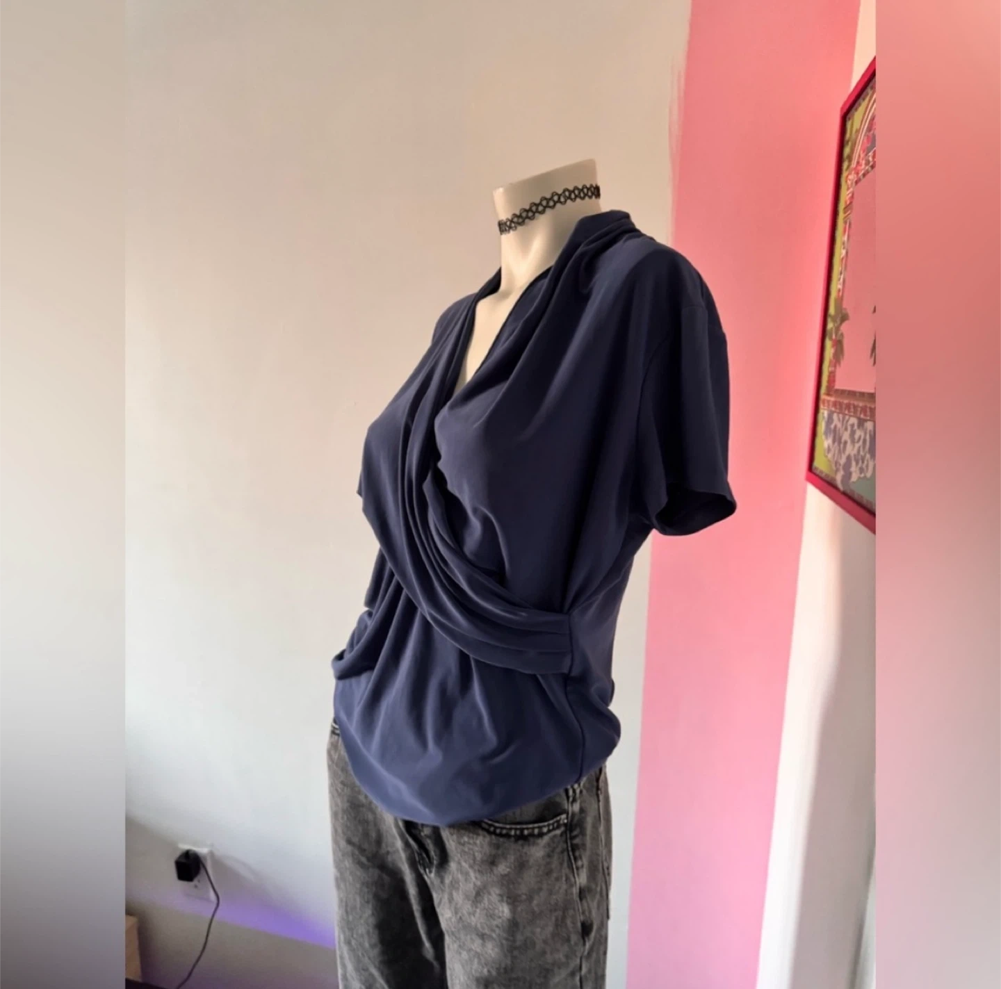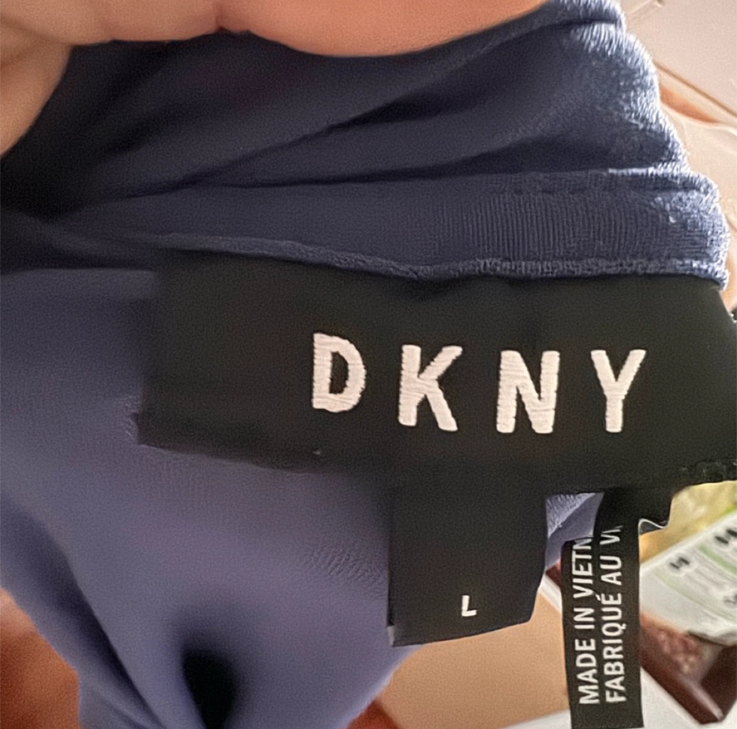 Brand: DKNY Size: L Measurements: Length: 29” Pit-to-Pit: 20” Shoulder Width: 8” Sleeve Length: 6” Hem Length: 21” Sleeve Cuff Length: 6” Neckline Depth: 5” Material: Polyester, Spandex Condition: EUC