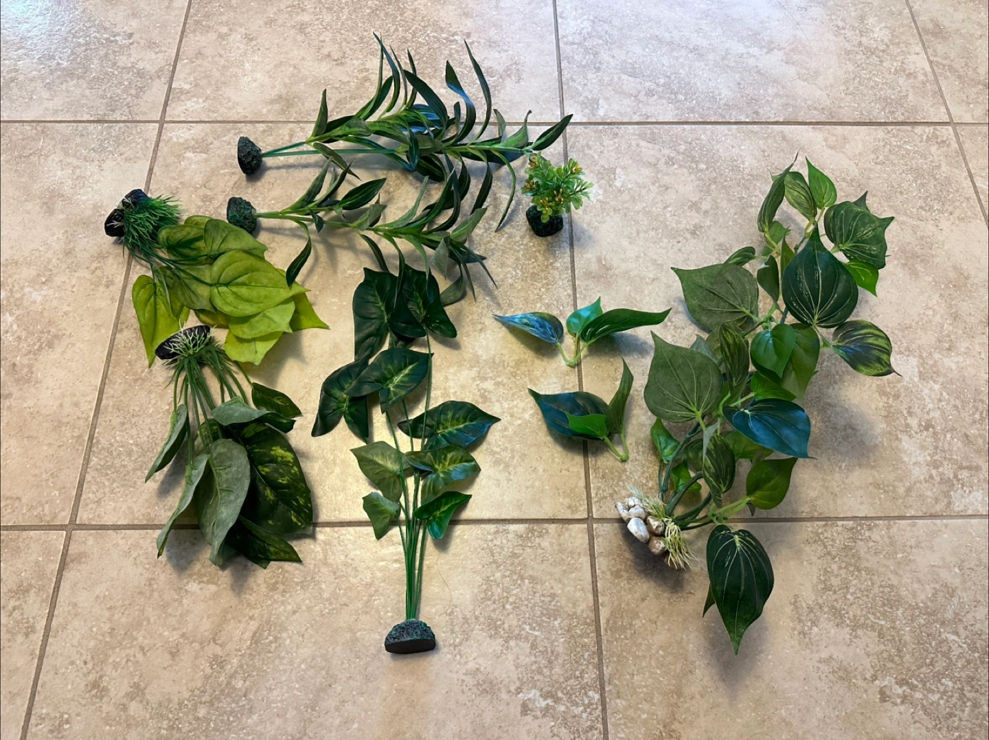 Artificial Aquarium Plants - 8 Total Good condition - couple pieces broke of large, broadleaf one but can be glued $20 Pick-Up Only Located near Kennedy and Steeles in Brampton.