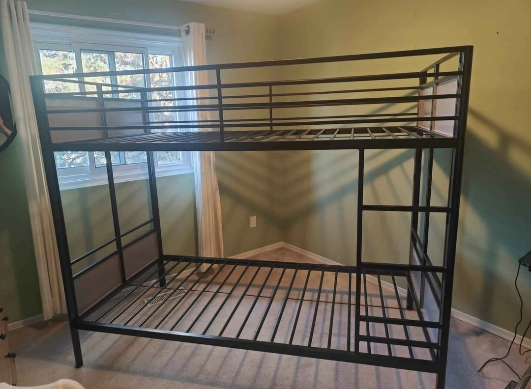 Selling a metal bunk bed frame in black. It's in good condition and ready for a new home! Perfect for kids' rooms or guest rooms Size: Twin