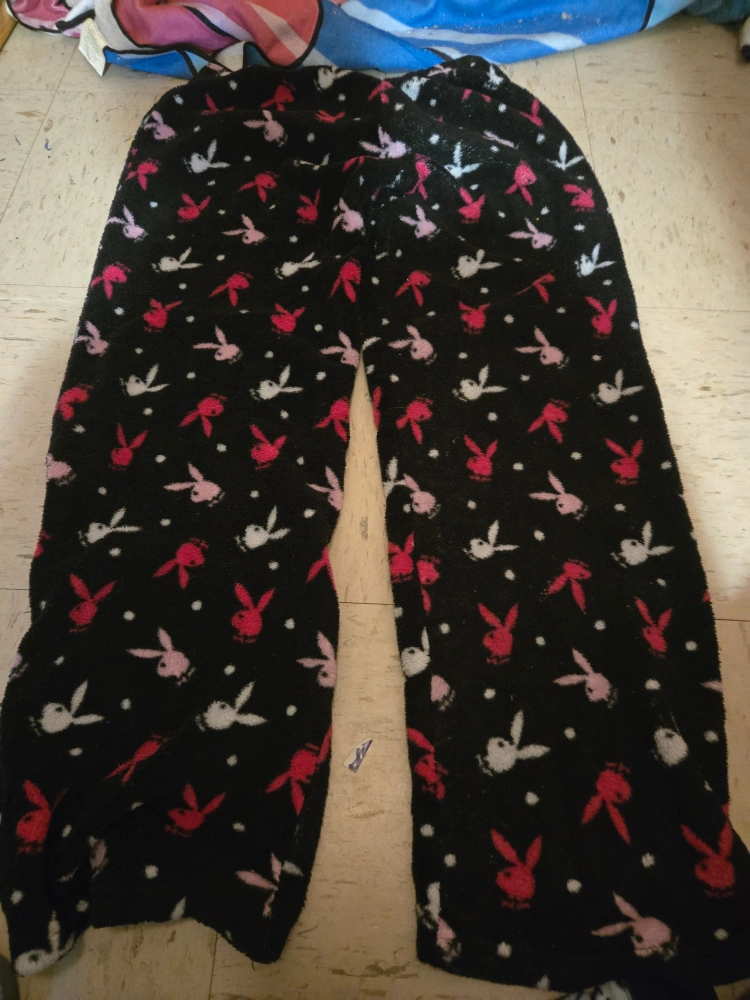 Cute and cozy Playboy fleece pajama pants in black with the iconic bunny logo in pink and white! They are super soft and comfy, perfect for lounging around at home