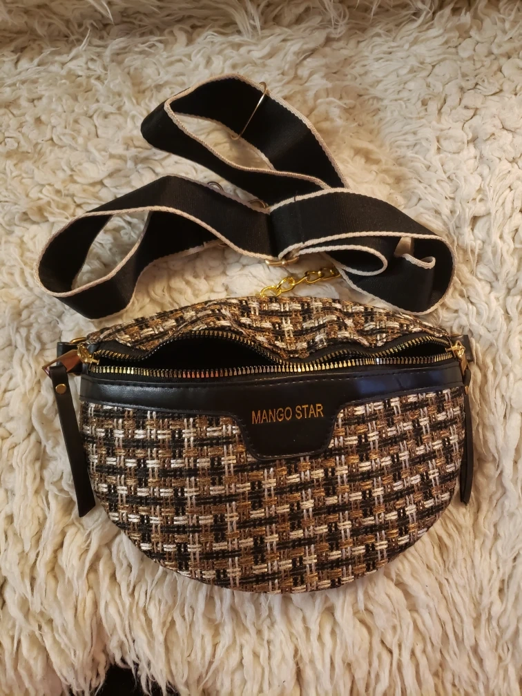 Check out this stylish Mango Star belt bag! It features a woven design and a comfortable strap. Perfect for keeping your essentials close while adding a touch of flair to your outfit