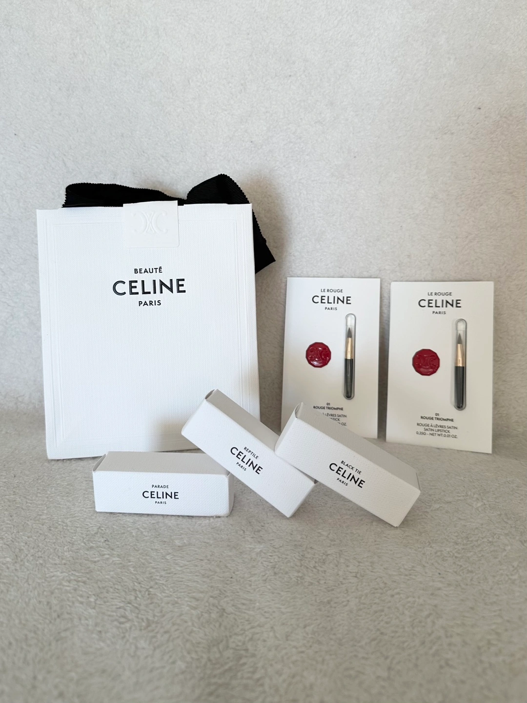 Selling a collection of Celine lipstick and perfume samples! Includes: - Le Rouge Celine Rouge Triomphe - Celine Parade - Celine Black Tie - Celine Reptile Authentic Celine. All brand new and unopened in original packaging and a beautiful paper bag. •Can be picked up at the Eaton Centre. Cash only. •Kindly check the item(s) before we complete the transaction, as everything is final sale and no refunds :)