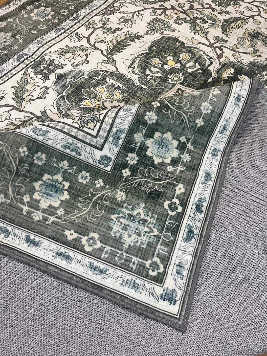 🥕 2x6 Hallway Runner Rug – Green/Floral Soft Distressed Rug