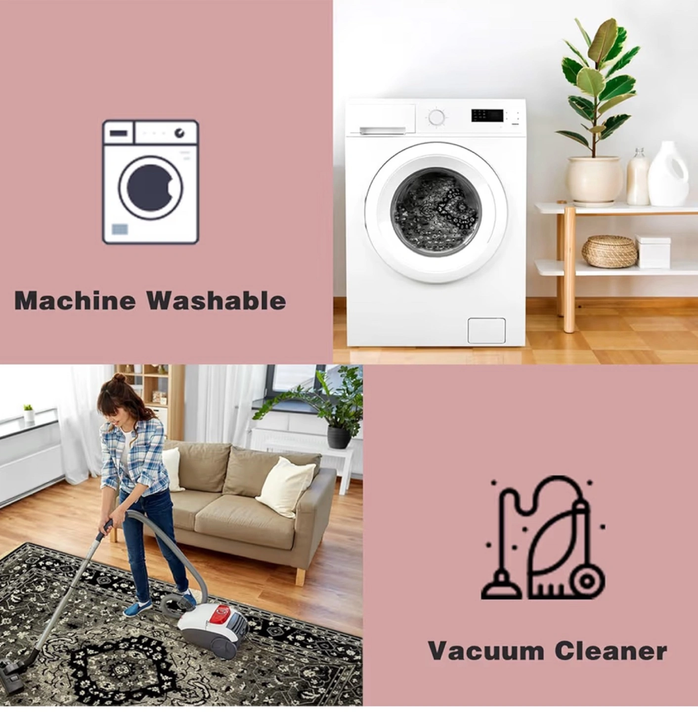 Pink & White Area Rug - Faux Cashmere, Non-Slip