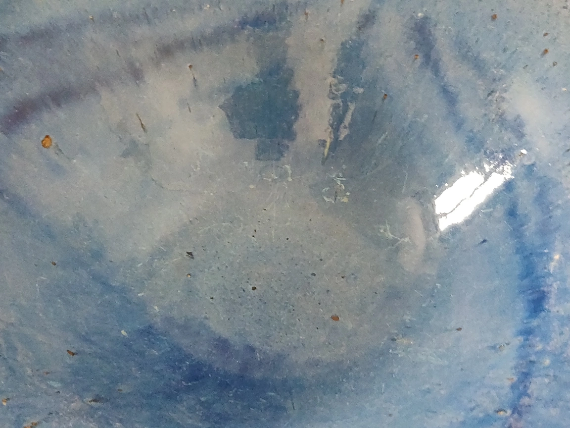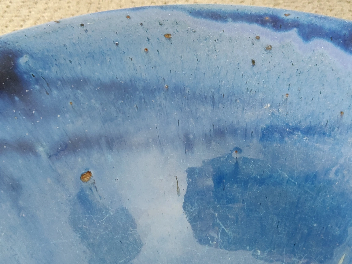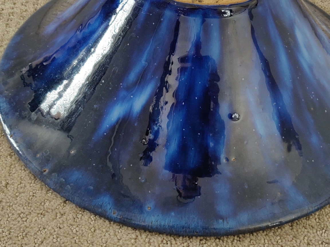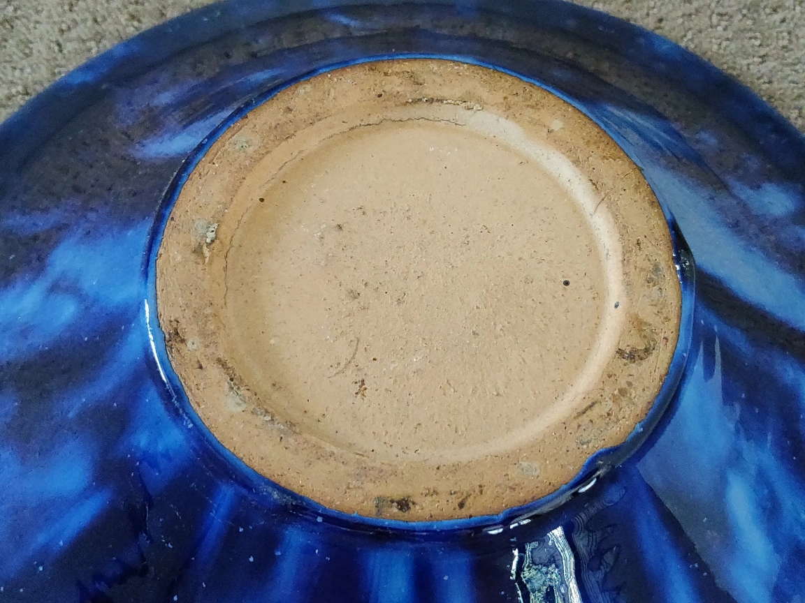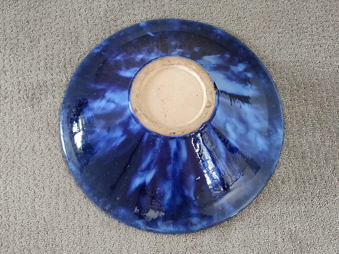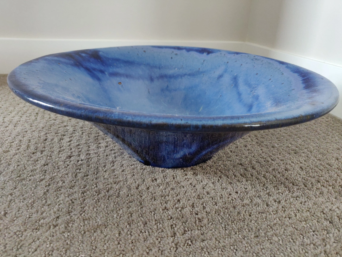NOTE: The bottom of the bowl has signs of scratches from us placing decorative rocks on the bottom of the bowl. The unique brown spots and streaks on the glaze are part of the original aesthetic and are not damage. This can be seen in the detailed photos.. I am selling a Large Decorative Glazed Pottery Fruit Bowl / Centerpiece Decor - Heavy Base in great condition. No chips or cracks. Add a touch of modern elegance to your home with this beautiful, large decorative bowl. Featuring a mesmerizing, deep blue glazed finish with unique white and brown speckles and streaks, this bowl is a true work of art. The heavy, sturdy design and tapered shape make it a striking centerpiece for any table, or a functional and stylish fruit bowl. Dimensions: * Top Diameter: 15-1/2" * Height: 4-1/2" * Bottom Diameter: 5" Comes from a pet and smoke-free environment. Pickup in Mount Pleasant (NW Calgary)